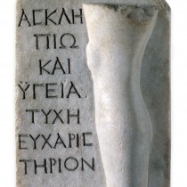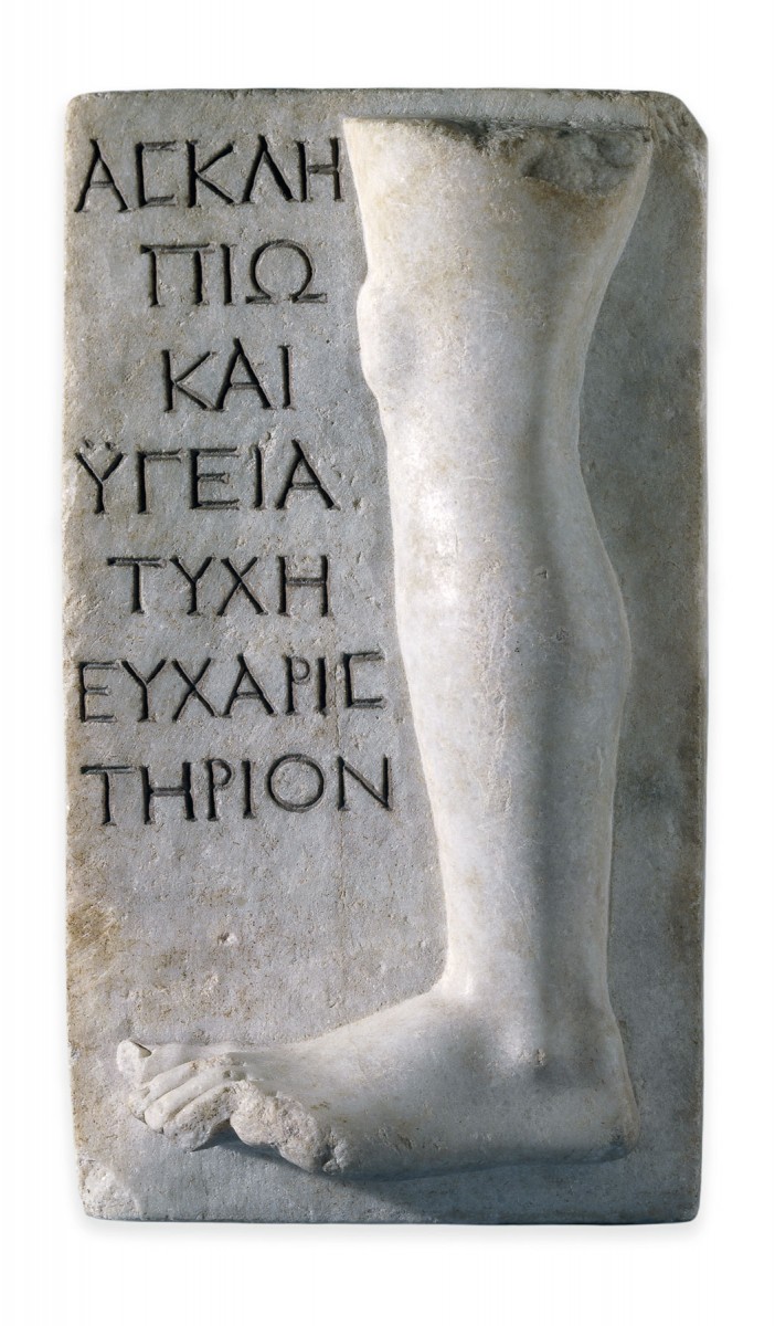 Παρουσιάζονται, επίσης, αντικείμενα που βρέθηκαν σε αυτά τα ιερά, όπως μαρμάρινα αγαλμάτια του Ασκληπιού και άλλων θεών-θεραπευτών, ανάγλυφα με αφηγηματικές σκηνές εγκοίμησης, πήλινα και μαρμάρινα αναθήματα που απεικονίζουν το πάσχον μέλος του σώματος (πόδια, χέρια, μάτια, στήθη, γεννητικά όργανα), καθώς και ενεπίγραφες μαρμάρινες στήλες στις οποίες καταγράφεται η θαυματουργή θεραπεία ασθενών με τη θεϊκή επέμβαση. Όλα αυτά τα αναθήματα –είτε επρόκειτο για τάματα υπέρ της θεραπείας, είτε για δείγματα ευγνωμοσύνης για την ίαση που επετεύχθη– βρίσκονταν αναρτημένα στα Ασκληπιεία και στόχευαν τόσο στον εντυπωσιασμό των προσκυνητών όσο και στην ενδυνάμωση της πίστης τους στις θεραπευτικές ικανότητες του θεού.