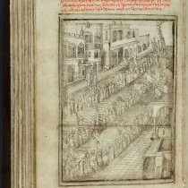 Ένα άλλο σπουδαίο έργο που επίσης παρουσιάζεται στην έκθεση είναι ο χειρόγραφος κώδικας από τη Μαρκιανή Βιβλιοθήκη της Βενετίας, η πολύτιμη «Χρονογραφία» του Γεωργίου Κλόντζα. Στις σελίδες του συνυφαίνονται η ιστορία του ανθρώπου από την έξωση των πρωτόπλαστων έως τη Δευτέρα Παρουσία, η κατάληψη χριστιανικών εδαφών από τους Οθωμανούς, προφητείες για την τελική τους ήττα, και η ιστορία της Κρήτης. Η εικονογράφηση καθορίζει την αφήγηση, η οποία συνοδεύεται είτε από κείμενα πρωτότυπα ή από επεξεργασμένα τμήματα βυζαντινών και ιταλικών πηγών. Εκτός από τη σελίδα με την εξαιρετική απεικόνιση της λιτανείας κατά την ημέρα της γιορτής της Αγίας Δωρεάς (Corpus Christi) στην πόλη του Χάνδακα (σημερινό Ηράκλειο), οι επισκέπτες θα μπορέσουν να ξεφυλλίσουν μέσα από μία οθόνη αφής (touch screen) και το μεγαλύτερο τμήμα των σελίδων του πολύτιμου αυτού χειρογράφου.