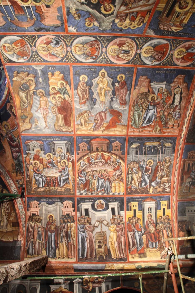 Πρώτον, να γίνει μια μελέτη των χρωστικών υλών όπως και μια μελέτη για τη χρήση των σχεδίων ζωγραφικής, των ανθιβόλων. Και επίσης φαίνεται πλέον καθαρά αυτό που είχα διατυπώσει στα συμπεράσματα του διδακτορικού μου, τη βεβαιότητα δηλαδή ότι το μνημείο έχει ζωγραφιστεί από πολλά χέρια και όχι μόνο από τον Γεώργιο Μάρκου. Αναμενόμενο και σύμφωνο με την κτητορική επιγραφή, γιατί δεν μπορεί ένα μνημείο τέτοιου μεγέθους να γίνει από έναν μόνο ζωγράφο. Αυτό όμως που είναι πολύ σημαντικό είναι να γίνει η αξιολόγηση και η ιεράρχηση της δουλειάς και να δούμε πώς λειτουργεί ένα εργαστήριο ζωγράφων, πώς ακόμα ακόμα γίνεται και η κατανομή μέσα στο ίδιο το εργαστήριο. Γιατί διακρίνουμε ότι ορισμένες παραστάσεις στα πιο σημαντικά μέρη του ναού, ή ορισμένες νέες παραστάσεις για τις οποίες σας μίλησα, όλες αυτές ζωγραφίζονται από τον ίδιο τον Μάρκου. Για τα υπόλοιπα μέρη του ναού δίνονται, φαίνεται, οι οδηγίες από αυτόν και μετά, στην εκτέλεση, υπάρχουν διαφορετικά χέρια. Άρα λοιπόν, θεωρώ ότι από αυτή τη συνεργασία κερδίζουν το μνημείο και η έρευνα και, αξιοποιώντας και όλα τα συμπεράσματα του διδακτορικού μου, πιστεύω ότι, σε μια μελλοντική συνεργασία με την κυρία Kido, πολύ γρήγορα μπορούμε να προχωρήσουμε σε τέτοια πεδία έρευνας πια.
