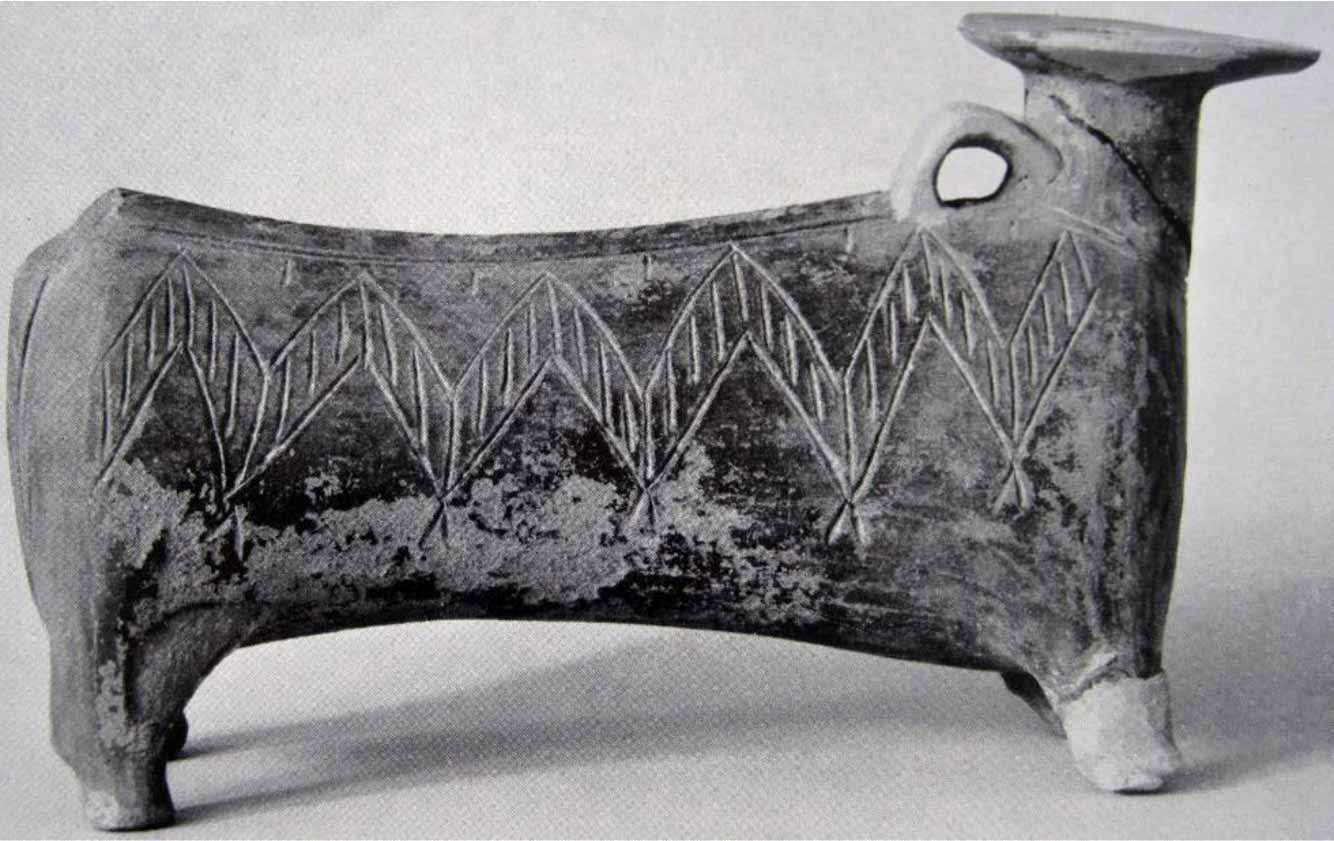 «Σκοτεινόχρωμη κεραμική (Dark-faced) (εικ. 1) του Edgar (Phylakopi 87-92, πίν. 4-5). Η κατηγορία αυτή, όπως και η γραπτή “γεωμετρική” κεραμική, χαρακτηρίζει την πρωιμότερη φάση (Ι-ii) της Πρώτης Πόλης της Φυλακωπής. Στη δεύτερη φάση δεν απαντά. Επιβεβαιώνεται η χρονολογική της θέση στην ΠΚ ΙΙΙ, όταν αποδεδειγμένα σχετίζεται με την “Ομάδα Καστριού”. Επίσης, από την κατανομή της σκοτεινόχρωμης κεραμικής στη Φυλακωπή, διαφαίνεται η επέκταση του οικισμού νότια, πιθανότατα κατά την πρώιμη ΜΚ εποχή.
