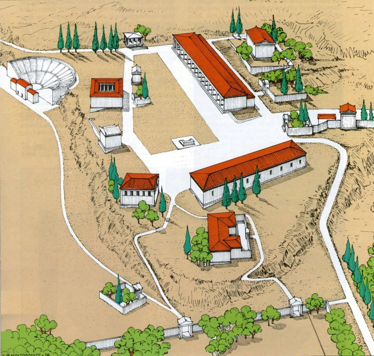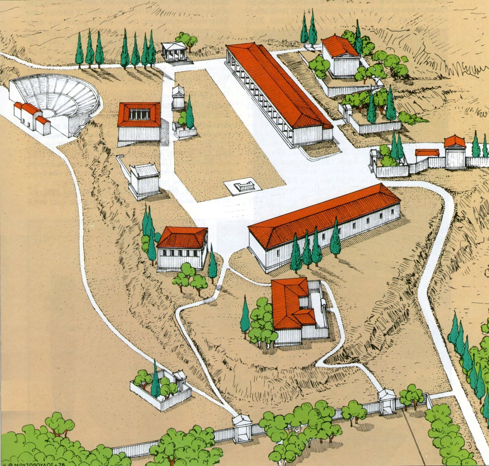 Πόλη: Μετά το συνοικισμό η πόλη (εικ. 4) οργανώνεται σύμφωνα με ορθογώνιο πολεοδομικό σύστημα, το λεγόμενο «ιπποδάμειο», βασισμένο στη διαίρεση της γης σε ισομεγέθη τμήματα (ισομοιρία), στην ορθολογική οργάνωση του αστικού χώρου και στο διαχωρισμό και τη σαφή οριοθέτηση των δημόσιων, ιδιωτικών και ιερών χώρων και των βασικών τομέων της. Την πόλη που προέκυψε από αυτή την οργάνωση, με τους ευθύγραμμους δρόμους (που διευκολύνουν την απρόσκοπτη κυκλοφορία πεζών και τροχοφόρων), τα κανονικά οικοδομικά τετράγωνα αλλά και την εξασφάλιση ανέσεων (ύδρευση, αποχέτευση, καλό προσανατολισμό, προσβάσεις, οδοποιία κ.ά.), χαρακτηρίζει ο ορθολογικός σχεδιασμός, το ανθρώπινο μέτρο, η αρμονία και η δημοκρατική ομοιομορφία, στοιχεία που επιτρέπουν την ορθολογική οργάνωση του βίου και την υλοποίηση στον αστικό χώρο της ιδέας της ισονομίας και εξασφαλίζουν ποιότητα ζωής και συμβίωσης των κατοίκων.
