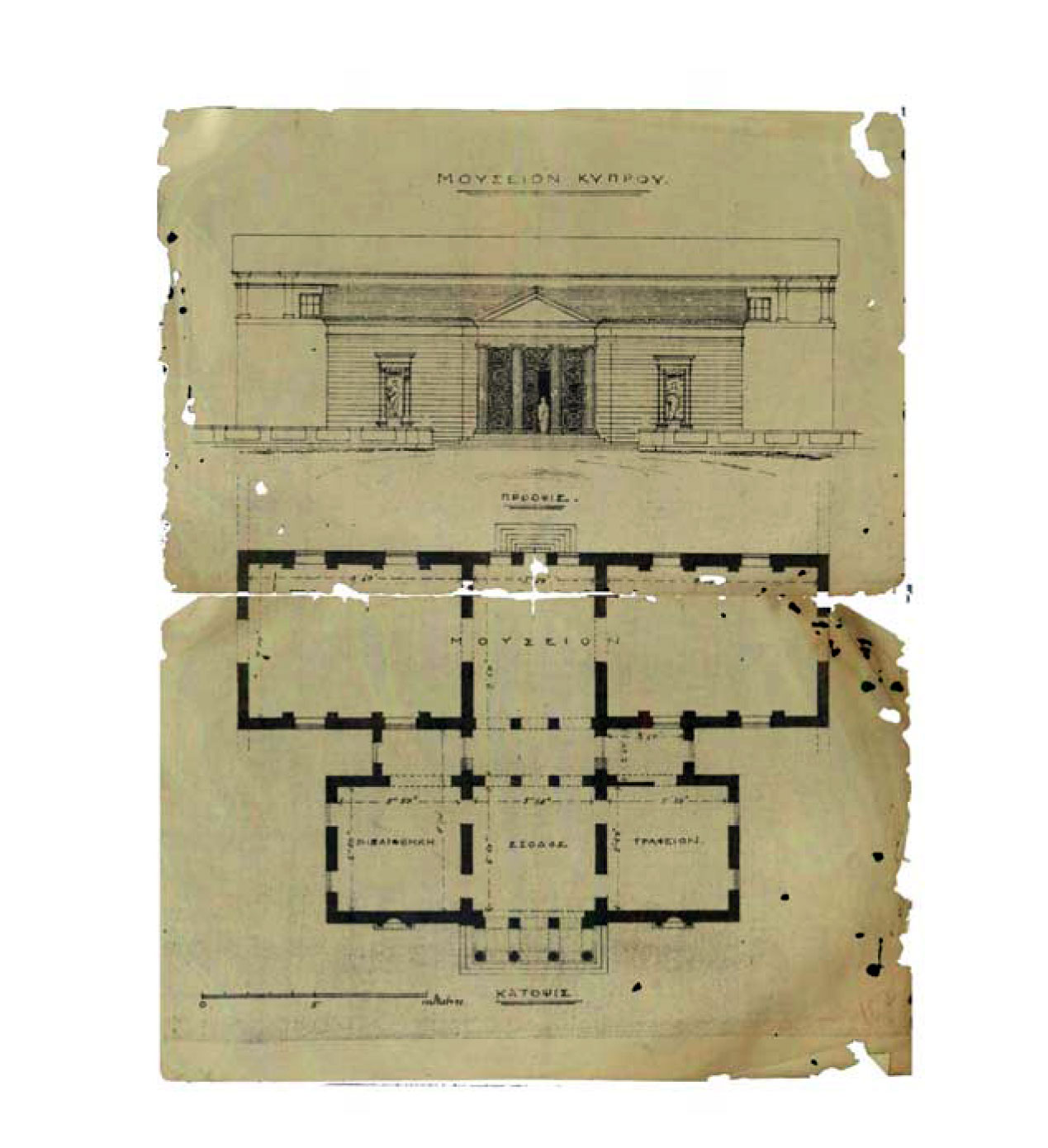 «Στα μέσα Νοεμβρίου του 1908, το πλοίο “Ευαγγελίστρια” έφτασε από τον Πειραιά στο λιμάνι της Αμμοχώστου στην Κύπρο, μεταφέροντας σε τεμάχια ένα μαρμάρινο αντίγραφο του προπύλου από τον ναό της Αθηνάς Νίκης στην Ακρόπολη, το οποίο στη συνέχεια μεταφέρθηκε με τον κρατικό σιδηρόδρομο στη Λευκωσία. Εκεί συναρμολογήθηκε και τοποθετήθηκε στην όψη του πρώτου αρχαιολογικού μουσείου της Κύπρου, που υλοποιήθηκε με τη συνεργασία της αποικιακής διοίκησης και της τοπικής πολιτικής ελίτ, σηματοδοτώντας την ολοκλήρωση της πρώτης φάσης του έργου, και διαμορφώνοντας την εικόνα του δημόσιου κτιρίου στην πόλη».