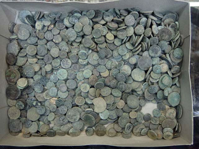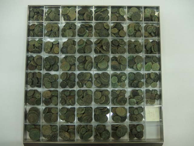 Στην πλειονότητά τους πρόκειται για χάλκινα νομίσματα κλασικών, ελληνιστικών, ρωμαϊκών και υστερορωμαϊκών χρόνων. Από την αρχαιολογική τεκμηρίωση που έγινε στο Νομισματικό Μουσείο αναγνωρίστηκαν εκδόσεις νομισματοκοπείων πόλεων της Μακεδονίας (Πέλλα, Φίλιπποι, Αμφίπολη, Θεσσαλονίκη, Τράγιλος κ.ά.), λιγοστές εκδόσεις πόλεων Αιγαιακής Θράκης (Μαρώνεια, Άβδηρα, ένα νόμισμα Αίνου), όπως και εκδόσεις βασιλέων Μακεδονίας (Αμύντας Γ’, Φίλιππος Β’, Αλέξανδρος Γ’, Δημήτριος Πολιορκητής, Φίλιππος Ε’, Περσεύς).