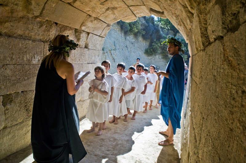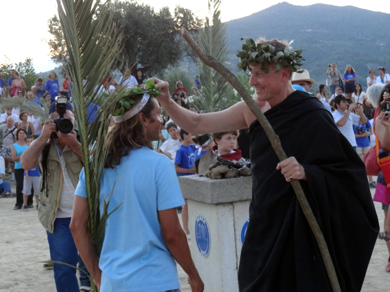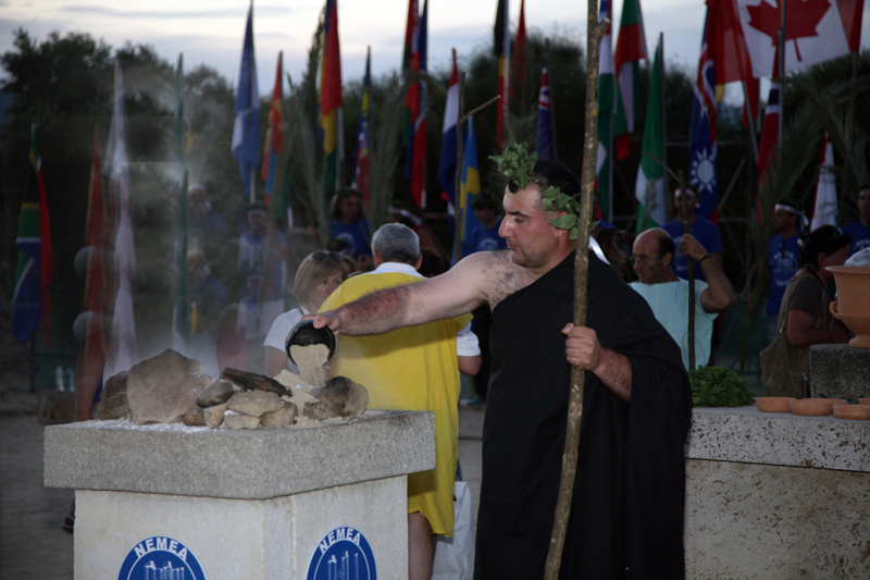 Σ.Μ.: Σε γενικές γραμμές, νομίζω ότι θα αποκτήσετε μια καλή εικόνα του τι έχει συμβεί, και του τι συμβαίνει, από το www.nemeangames.org. Αλλά για να έρθουμε στις ερωτήσεις σας, ο «Σύλλογος για την Αναβίωση των Νεμέων αγώνων» έχει δύο βασικές αρχές: αυθεντικότητα και συμμετοχή. Θέλουμε όλους και τον καθένα χωριστά, όποιον επιθυμεί να πάρει μέρος και να ξαναζήσει στο μέτρο του δυνατού τους αρχαίους αγώνες. Δεν μπορούμε να επιμείνουμε στη γυμνότητα και δεν αποκλείουμε τις γυναίκες, αλλά είναι μεγάλος ο αριθμός των ανθρώπων που, όπως δήλωσαν, ένιωσαν να μεταμορφώνονται: έχοντας αλλάξει τα ρούχα τους μ’ έναν «αρχαίο» χιτώνα στο αποδυτήριον, έχοντας περπατήσει ξυπόλητοι μέσα από τη θολωτή δίοδο του Σταδίου, τοποθετώντας τα δάχτυλα των ποδιών στις αρχαίες αυλακώσεις της αφετηρίας , γίνονταν για 10 λεπτά αρχαίοι Έλληνες. Στα πιο πρόσφατα Νέμεα, το 2012, έλαβαν μέρος 1.018 άτομα από 87 διαφορετικές χώρες. Φοβόμαστε ότι τα επίπεδα θα ανέβουν τόσο πολύ το 2016 που θα δυσκολευτούμε πολύ να τους δεχθούμε όλους.