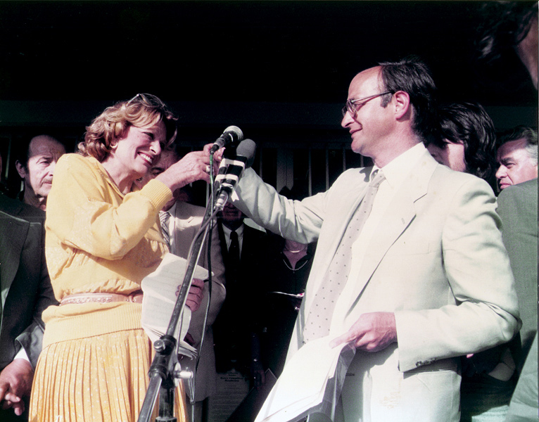 Σ.Μ.: Χωρίς τη βοήθεια του Δεληβορριά, που οργάνωσε την έκθεση το 1983, δεν θα υπήρχε αναστήλωση. Την περίοδο εκείνη, όπως είπατε, υπήρχε έντονη αντιπάθεια προς τις ξένες αρχαιολογικές σχολές. Η έκθεση στο Μουσείο Μπενάκη, υπό την αιγίδα της Μαργαρίτας Παπανδρέου, της Μελίνας και του Γεώργιου-Αλέξανδρου Μαγκάκη, μετέβαλε το πολιτικό κλίμα, τουλάχιστον τόσο ώστε να εγκριθεί η πρότασή μας. Η ιδέα για την έκθεση ήταν του Δεληβορριά, και στόχευε σ’ αυτό ακριβώς που πέτυχε. Παρεμπιπτόντως, ο Δεληβορριάς διατήρησε το ενδιαφέρον του, όπως μπορείτε να δείτε στη φωτογραφία που εμφανίζεται ως κριτής στην πρώτη αναβίωση των Νεμέων.