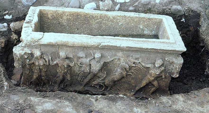 Η σαρκοφάγος από τους Γόμφους, σημειώνει ο κ. Χατζηαγγελάκης, έχει μεγάλη συνάφεια με αττικό εργαστήριο, καθώς οι αττικές σαρκοφάγοι, που η παραγωγή τους άρχισε γύρω στο 130 μ.Χ. και η παραγωγή τους φαίνεται να σταματά λίγο μετά το 250 μ.Χ., είχαν μεγάλη ζήτηση, και όχι μόνο στον ελλαδικό χώρο.