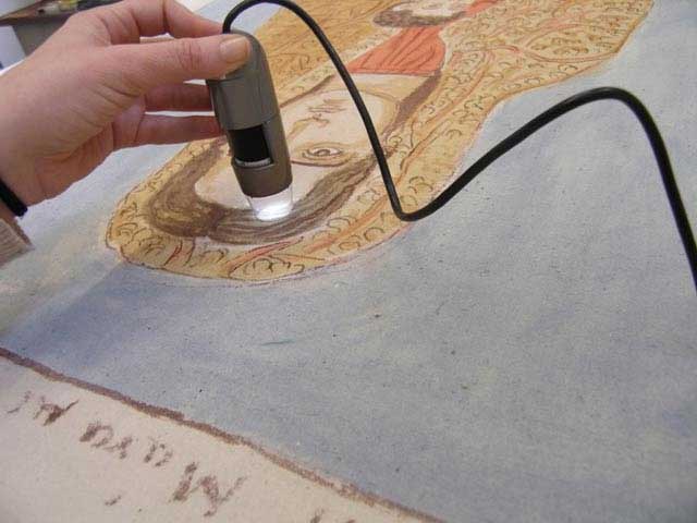 Στο δεύτερο στάδιο πραγματοποιήθηκαν αναλύσεις των χρωστικών σε συνεργασία με το Τμήμα Χημικών Μηχανικών του ΕΜΠ με μη-καταστρεπτικές μεθόδους, καθώς και αναλύσεις των μικροοργανισμών που έχουν προσβάλει κάποια από τα έργα σε συνεργασία με το Τμήμα Μικροβιολογίας της Ιατρικής Σχολής Αθήνας.