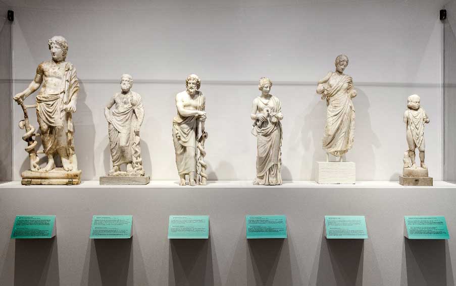 Η έκθεση παρουσιάζει την εξέλιξη των αρχαίων θεραπευτικών πρακτικών από το 1200 π.Χ. έως τον 3ο αιώνα μ.Χ., εξετάζοντας τη μετάβαση από τη μαγικο-θρησκευτική θεραπεία στην ορθολογική, επιστημονική ιατρική. Μεταξύ άλλων απαντά σε ερωτήματα όπως: Φρόντιζαν τη διατροφή και το σώμα τους στην αρχαία Ελλάδα; Πώς αντιμετώπιζαν το ζήτημα της δημόσιας υγείας; Τι έκανε ένας αθλητής εάν τραυματιζόταν 2.500 χρόνια πριν; Υπήρχαν χειρουργικά εργαλεία; Πώς χρησιμοποιούσαν το όπιο και άλλες φαρμακευτικές ουσίες και βότανα;
