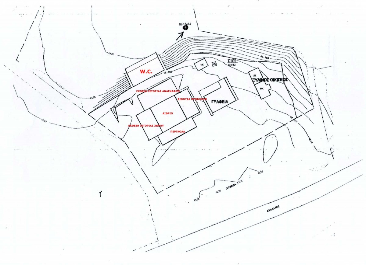 1. Δημιουργία Κέντρου Ενημέρωσης Επισκεπτών: Τέλος, προκειμένου να ενισχυθεί η αναγνωσιμότητα του χώρου προτείνεται η δημιουργία ενός κέντρου ενημέρωσης των επισκεπτών (εικ. 2) με χρήση του υφιστάμενου κτιρίου της Παλαιάς Αρχαιολογικής Συλλογής κατάλληλα αναπλασμένου. Πιο αναλυτικά προτείνεται στο κτίριο αυτό να αναπτυχθούν, πέραν της Έκθεσης της Ιστορίας των Ανασκαφών η οποία θα βελτιωθεί και θα ενισχυθεί, μια έκθεση της ιστορίας του χώρου με τη χρήση κατάλληλου εποπτικού υλικού και μέσων, όπως αναπαραστάσεων και μακετών της μορφής του χώρου στις διάφορες ιστορικές περιόδους του, με προβολή του καίριου ρόλου της πόλης στη διοργάνωση των αρχαίων Ολυμπιακών αγώνων. Οι δύο εκθέσεις μπορούν να ενισχυθούν κατάλληλα με διαδραστικές και πολυμεσικές εφαρμογές. Τέλος, στο ίδιο κτίριο προτείνεται και η δημιουργία μιας αίθουσας προβολών και διαλέξεων για τη φιλοξενία εκπαιδευτικών δράσεων.
