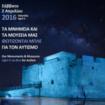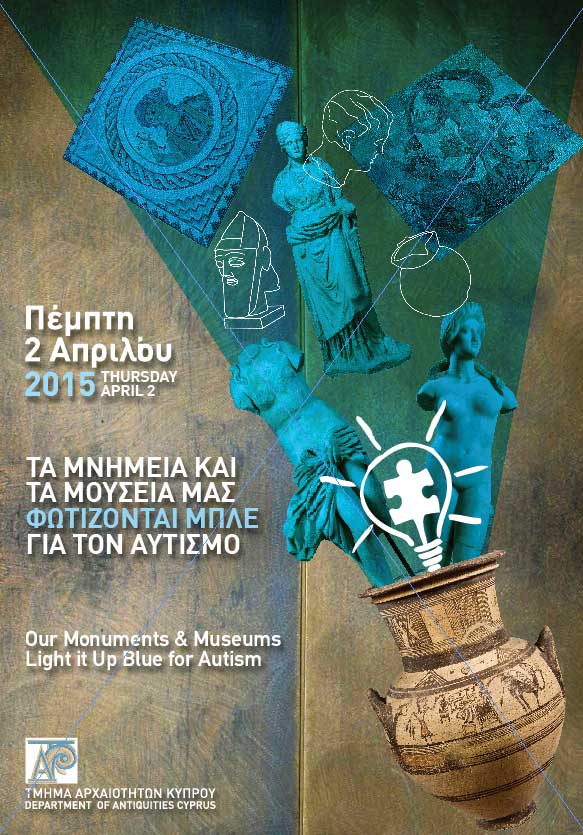 Μπλε χρώμα θα αποκτήσουν σημαντικά μνημεία και μουσεία της Κύπρου την Πέμπτη 2 Απριλίου 2015. Με αυτό τον τρόπο το Τμήμα Αρχαιοτήτων Κύπρου συμμετέχει στην παγκόσμια εκδήλωση Light it Up Blue, στο πλαίσιο της Διεθνούς Ημέρας Ενημέρωσης για τον Αυτισμό.