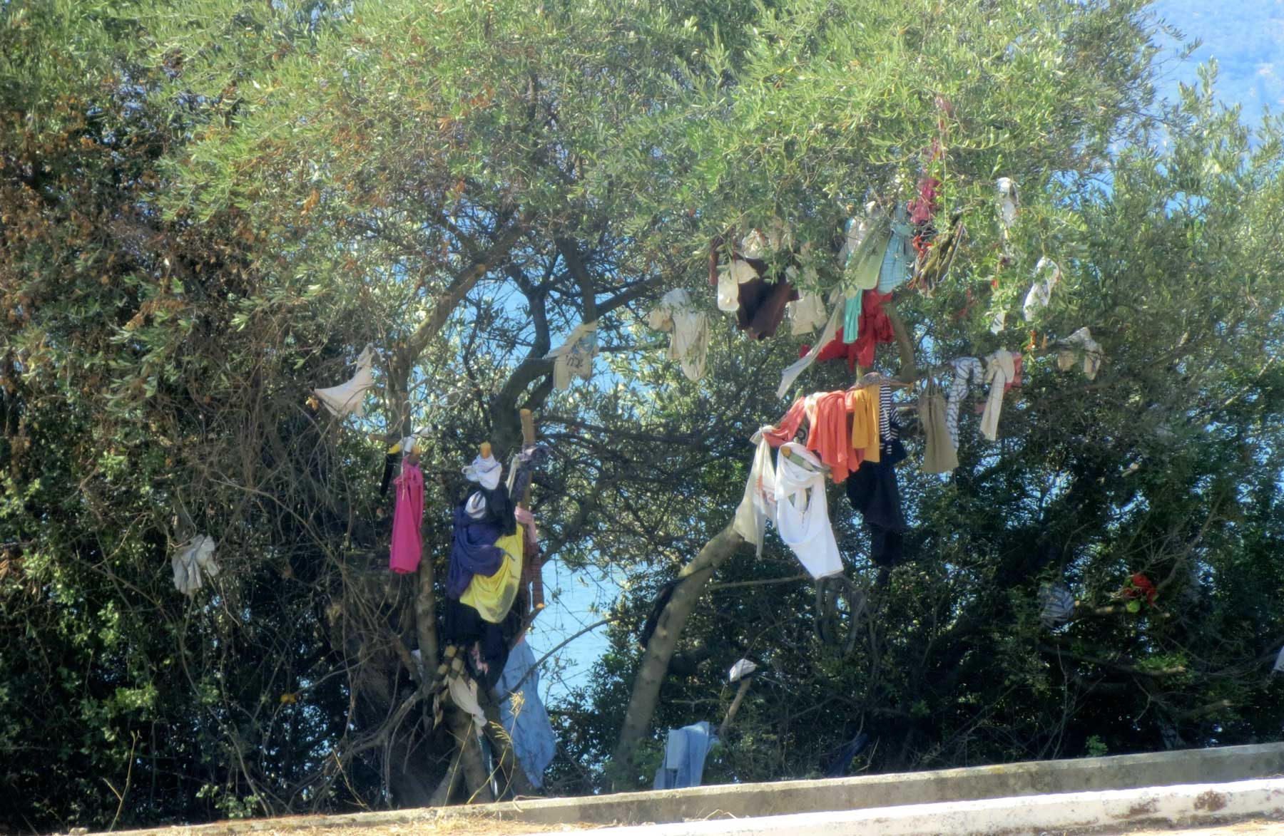 Ένα παράδειγμα είναι αυτό της ανάρτησης μαντηλιών, ρούχων και κλωστών (τζάτζαλα) στα κλαδιά δέντρων και σε θάμνους. Τα τζάτζαλα αυτά αποτελούν τάματα πιστών που ζητούν συνήθως ίαση. Συχνά τα δέντρα αυτά και οι θάμνοι βρίσκονται κοντά σε εκκλησίες. Για παράδειγμα, στη Λέσβο υπάρχουν δυο ναοί με θεραπευτικές ιδιότητες και με την ονομασία «Άι-Θάραπης (Θεράπων) Τζατζαλιάρης» και «Άι-Γιάννης ο Τζατζαλιάρης».