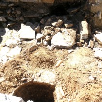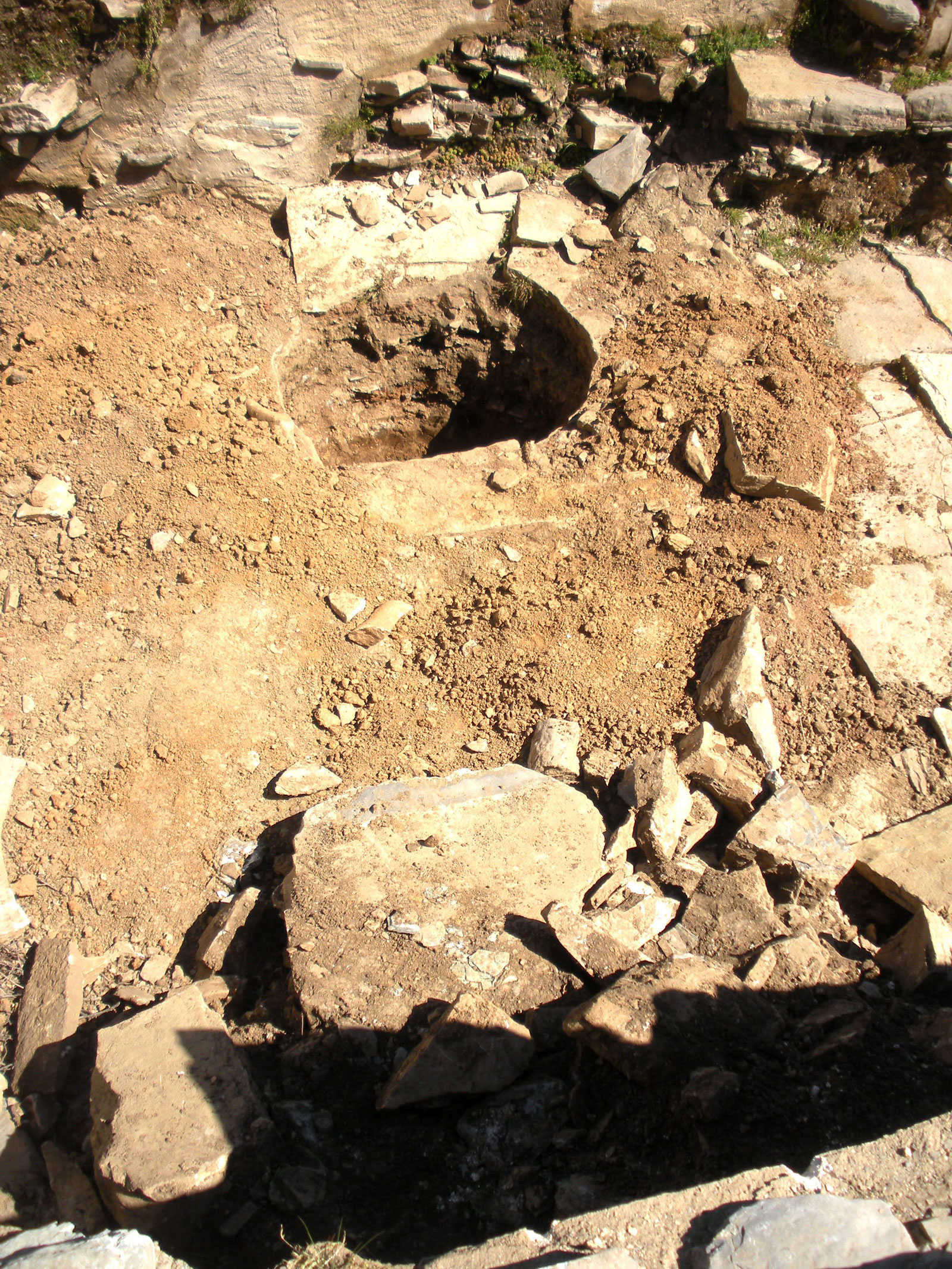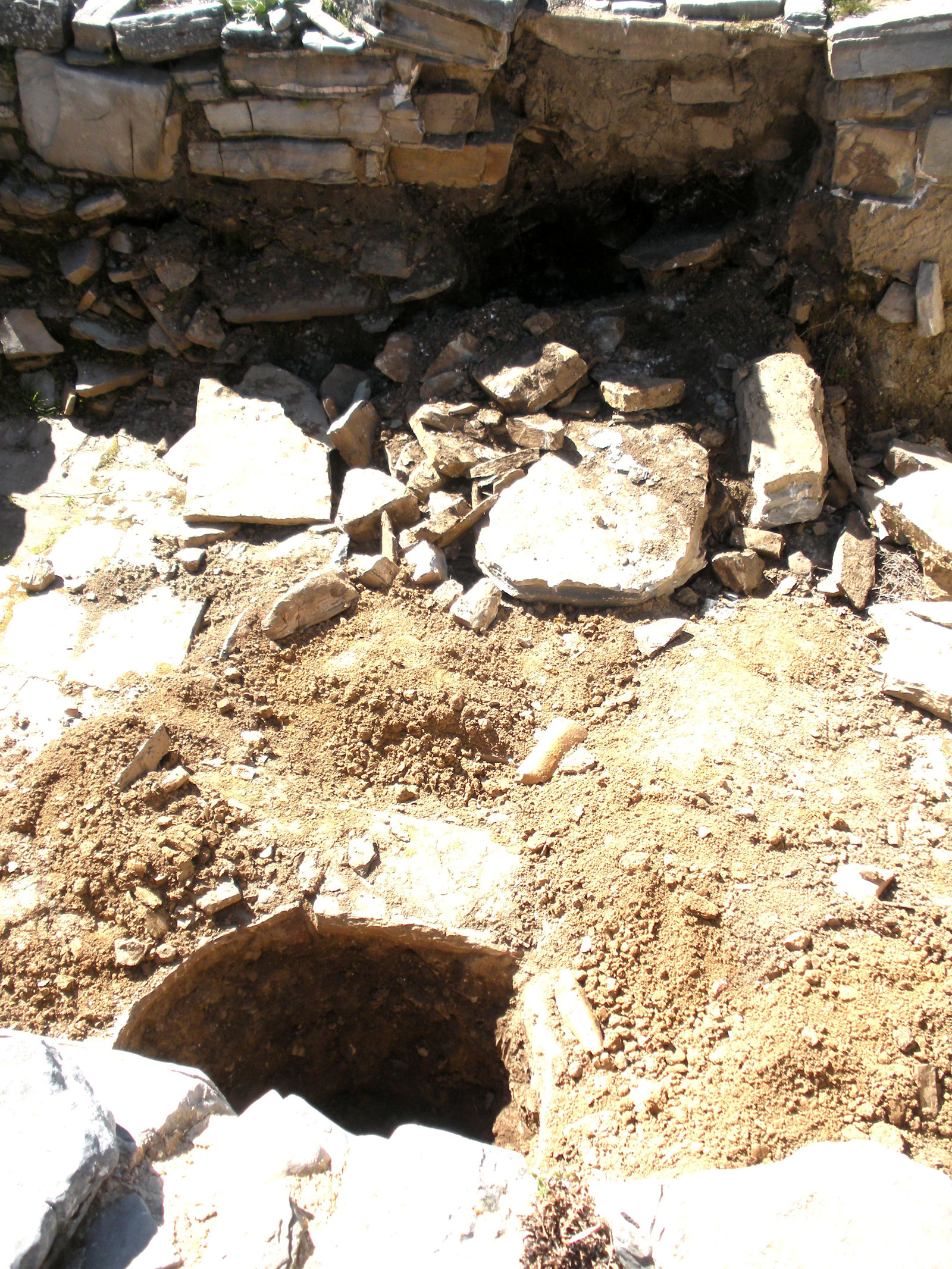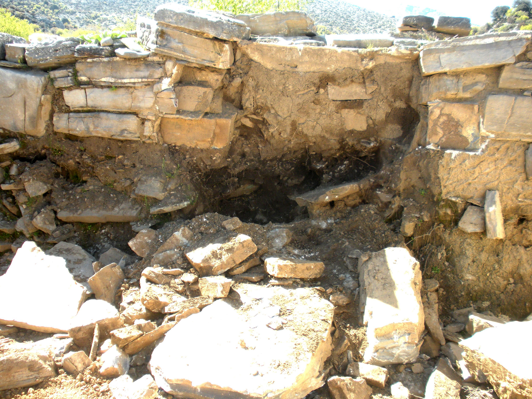 «Ζημιές παρατηρήθηκαν σε τρία από τα σαράντα δύο ανασκαμμένα δωμάτια του συγκροτήματος (συνολικός αριθμός: 57 δωμάτια). Στο δωμάτιο 50 οι λαθρανασκαφείς έσκαψαν υπό το δάπεδο εστίας και κατέστρεψαν τμήμα του νότιου τοίχου. Επίσης μετακινήθηκε και έσπασε βάση κίονα που είχε βρεθεί νοτίως της εστίας στον ίδιο χώρο. Στο δωμάτιο 35 είχε διανοιχθεί μία επιμήκης τομή με άξονα Α προς Δ και είχαν διαταραχθεί οι επιχώσεις. Ακόμη στο δωμάτιο 26 οι λαθρανασκαφείς ξεσκέπασαν καλυμμένο τμήμα κάρβουνου και άνοιξαν το κάλυμμα ξύλινου κιβωτίου που είχε τοποθετηθεί πάνω από βάση κίονα».