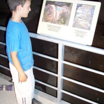 Αριστερά της εισόδου, σε μικρή αίθουσα, έχει αναρτηθεί φωτογραφικό και πληροφοριακό υλικό για την ιστορία της ανασκαφής, τις πρώτες χειρόγραφες καταγραφές του υλικού, που αντικαταστάθηκαν στη συνέχεια με ηλεκτρονικές, κατάλογο των δημοσιεύσεων κ.λπ. Αναφέρονται επίσης όλα τα ονόματα των συνεργατών και μελετητών της ανασκαφής. Στον δυτικό τοίχο του ίδιου χώρου έχει εγκατασταθεί μεταλλικός αποθηκευτικός χώρος με διαπερατότητα ως προς το περιεχόμενό του, με αρχαιολογικό υλικό (κυρίως βαριά λίθινα εργαλεία, κεραμική, οστά κ.λπ.) αποθηκευμένο σε κιβώτια, καθώς και δείγματα των εργαλείων και λοιπού εξοπλισμού που έχουν χρησιμοποιηθεί στην ανασκαφή.