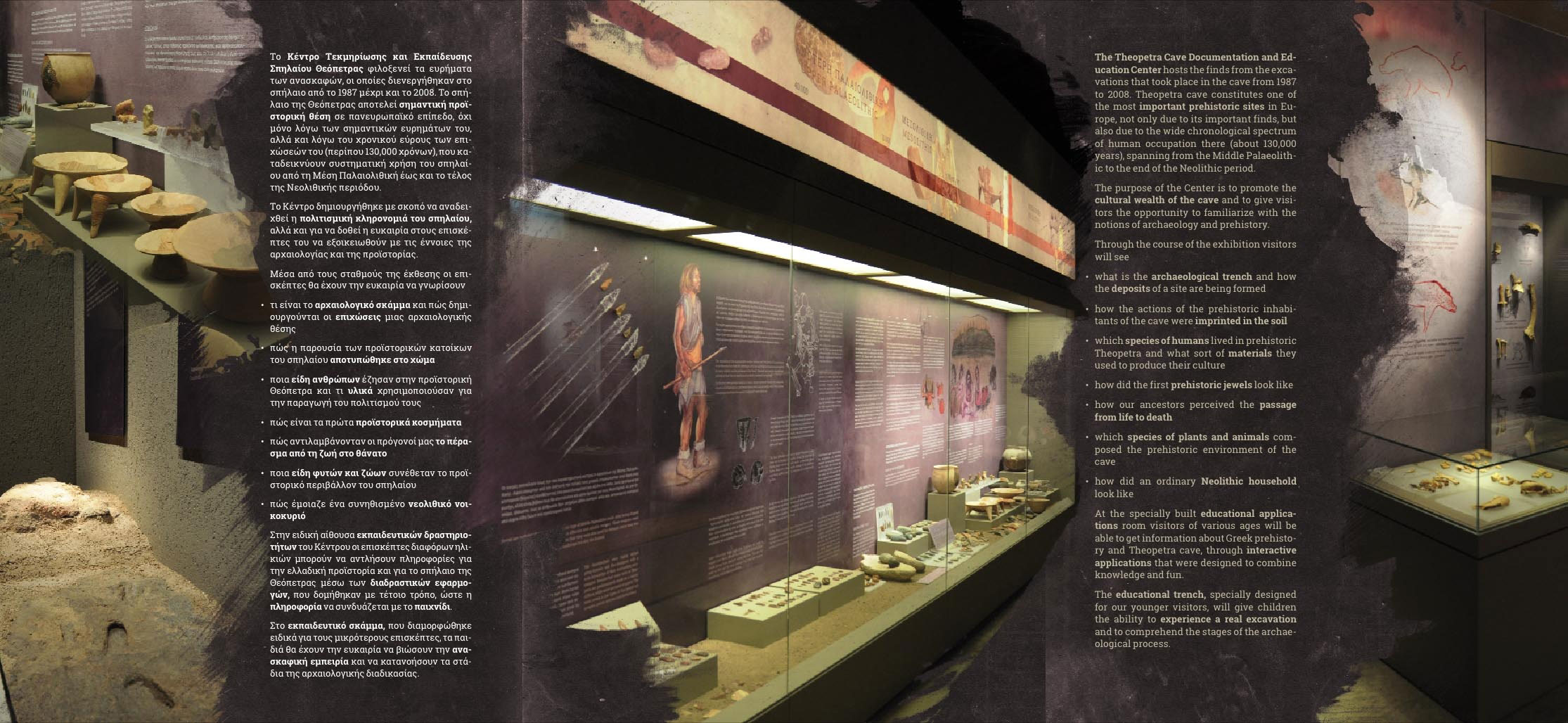 Το Σπήλαιο της Θεόπετρας αποτελεί το μεγαλύτερο και πιο ολοκληρωμένο έως σήμερα ερευνητικό πρόγραμμα της Εφορείας Παλαιοανθρωπολογίας και Σπηλαιολογίας. Από τα στοιχεία που παρουσιάστηκαν στο 1ο και στο 2ο μέρος του αφιερώματος προκύπτουν οι λόγοι για τους οποίους το σπήλαιο αποτέλεσε αντικείμενο ανάδειξης μέσω των κοινοτικών προγραμμάτων του Γ΄ Κοινοτικού Πλαισίου Στήριξης (Γ’ ΚΠΣ). Για μας ήταν ένα σοβαρό δίλημμα αν έπρεπε να αναδειχτεί, ξέροντας πως η ανάδειξη σημαίνει πολλές φορές επιβάρυνση του αρχαιολογικού χώρου με τα τεχνικά έργα που απαιτούνται. Από την άλλη όμως θεωρήσαμε ότι όλοι οι Θεσσαλοί αλλά και οι ξένοι επισκέπτες των Μετεώρων, που βρίσκονται πολύ κοντά, θα ’πρεπε να επισκεφθούν αυτόν το χώρο, που υπήρξε κοιτίδα του πολιτισμού μας (εικ. 1). Έτσι, στον εξωτερικό χώρο δημιουργήθηκαν προσβάσεις για όλους, ακόμη και για άτομα με προβλήματα κινητικότητας (εικ. 2-3), ενώ στο εσωτερικό οι επισκέπτες μπορούν να διέρχονται περπατώντας σε μεταλλικό διάδρομο πάνω από τα σκάμματα της ανασκαφής βλέποντας τα in situ διατηρημένα κατάλοιπα (εστίες φωτιάς διαφόρων περιόδων, τις μεταβολές του κλίματος όπως αποτυπώνονται στη στρωματογραφία, τα αποτυπώματα των ανθρώπινων πελμάτων, τα σημεία όπου βρέθηκαν οι ταφές, και μία εξ αυτών να εκτίθεται, κ.ά.). Επιπλέον, με αναρτημένες πινακίδες δίνονται περισσότερες πληροφορίες για τα ευρήματα (εικ. 4-5) και ειδικός διακριτικός φωτισμός αναδεικνύει το φυσικό περιβάλλον του σπηλαίου. Έτσι τα έργα ανάδειξης του σπηλαίου και των ανασκαφών του αποδείχτηκαν τελικά μια σωστή επιλογή, εφόσον κατάφεραν να διατηρήσουν αλώβητη την ατμόσφαιρα του σπηλαίου, σχεδόν όπως ήταν όταν πρωτοαρχίσαμε τις έρευνες, και την ίδια την ανασκαφή ορατή στα διάφορα στάδια όπου αυτή σταμάτησε, αναλόγως με τα ευρήματα. Άλλωστε ο συνεχώς αυξανόμενος αριθμός επισκεπτών συνηγορεί υπέρ της επιλογής της ανάδειξης.