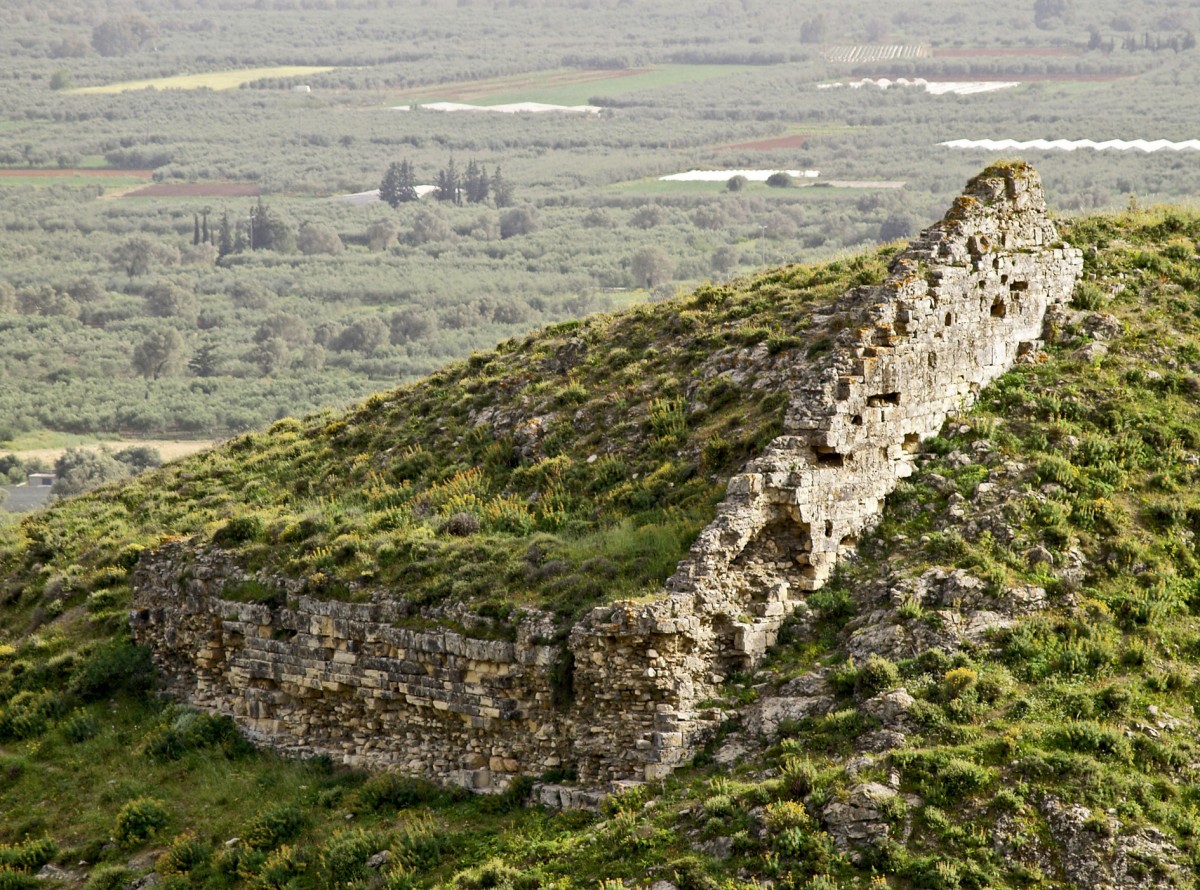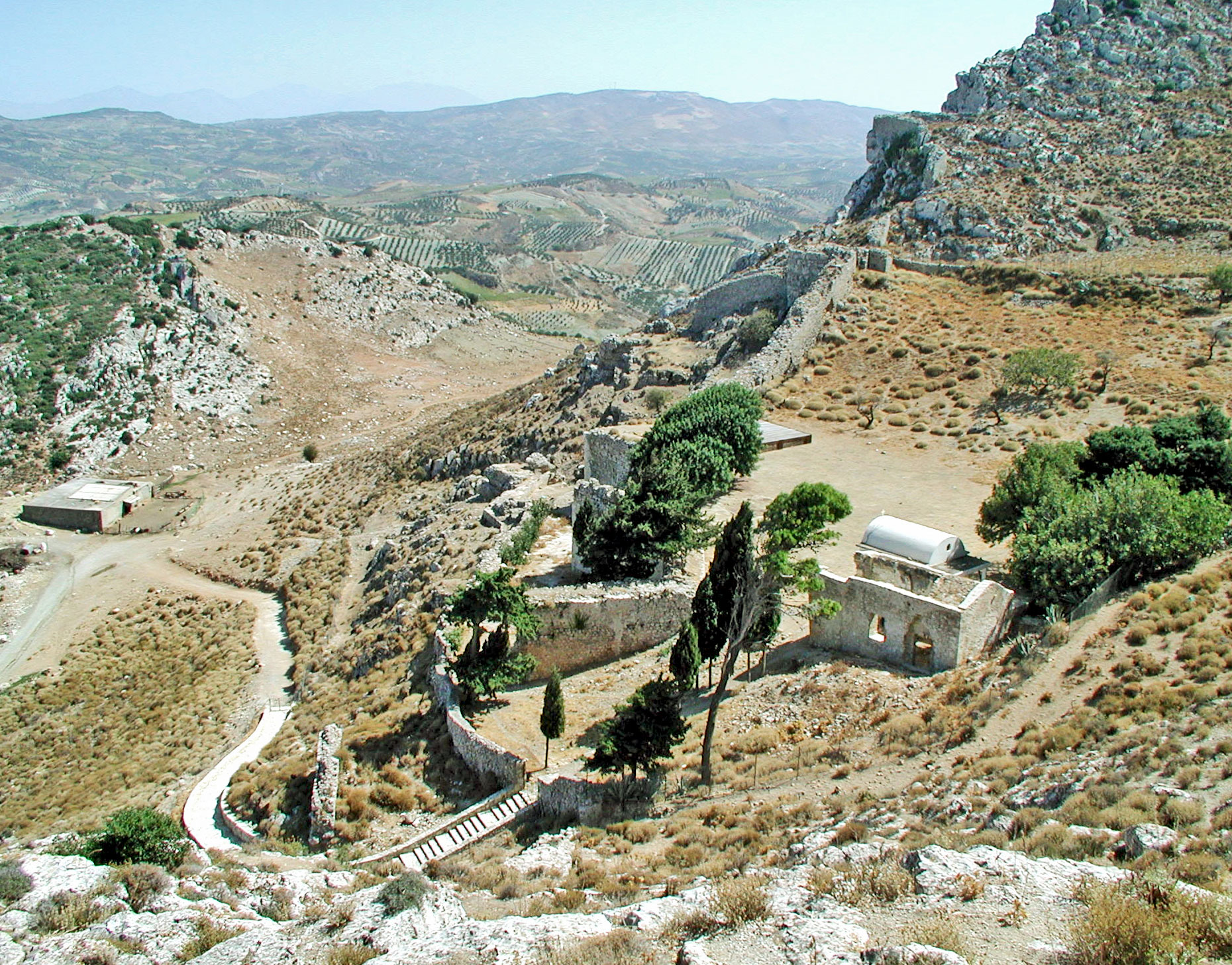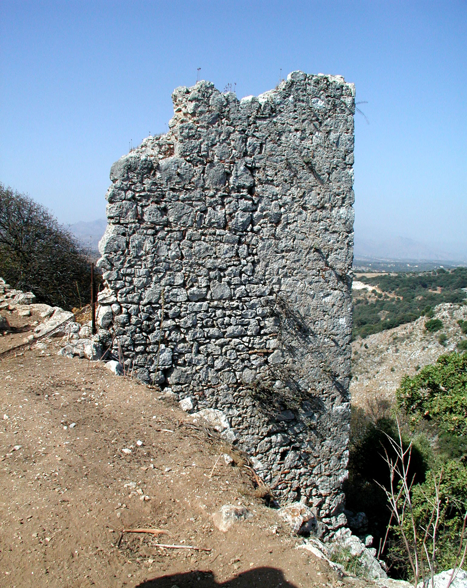 Σημαντική οχυρωματική κατασκευή της Α΄ βυζαντινής περιόδου υπήρξε η ακρόπολη της Γόρτυνας. Η Γόρτυνα στη Μεσαρά (περίπου στο κέντρο της Κρήτης με πρόσβαση σε λιμάνια της νότιας ακτής), υπήρξε η πρωτεύουσα της Κρήτης ήδη από τους ρωμαϊκούς χρόνους. Η οχύρωση του λόφου ανατολικά και βόρεια της εκτεταμένης πόλης (διαφοροποιείται από την ελληνιστική ακρόπολη στο λόφο του Προφήτη Ηλία δυτικότερα), συνίσταται στην κατασκευή μνημειώδους οχυρωματικού περιβόλου που επιστέφει το λόφο παρέχοντας προστασία σε μια ευρύχωρη επίπεδη έκταση. Στο εσωτερικό της ακρόπολης βρισκόταν ήδη μεγάλο προγενέστερο κτίσμα (γνωστό σήμερα ως Κάστρο). Το τείχος διαθέτει ισχυρό πολυγωνικό πύργο (στην προσβάσιμη δυτική πλευρά), και άλλους τρεις τετράγωνους πύργους (οι δύο καλύπτουν τη ΒΔ και ΝΔ γωνία αντίστοιχα). Η τοιχοποιία αποκαλύπτει τη χρήση δόμων προγενέστερης περιόδου από το άφθονο οικοδομικό υλικό της πρώην ακμάζουσας Γόρτυνας, η οποία κατά τον 7ο αιώνα είχε μετατραπεί σε «σκιά» μόνον της παλαιότερης πρωτεύουσας. Η εξωτερική παρειά του τείχους κτίζεται επιμελημένα με ορθογώνιους προσεκτικά επεξεργασμένους δόμους (εικ. 2), εδράζεται στον θεμέλιο βράχο και η μορφολογία του παραπέμπει στα μεγάλα οχυρωματικά έργα της Άγκυρας, της Νίκαιας, της Κώρυκου, της Μακεδονίας, της Κυδωνίας όπως και σε πολλά σημεία που οικοδομούνται σημαντικά οχυρωματικά έργα κατά τους αιώνες 6ο έως 7ο στην επικράτεια της αυτοκρατορίας κάτω από την απειλή των αραβικών επιθέσεων. Η ακρόπολη της Γόρτυνας φαίνεται ότι επαναχρησιμοποιήθηκε και μετά την αραβοκρατία, όπως μαρτυρεί προσθήκη στα ανατολικά της οχύρωσης, που διαθέτει χαρακτηριστική τοιχοποιία των οχυρώσεων της Β΄ βυζαντινής περιόδου.