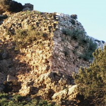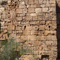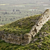 Στην ακρόπολη της Ελεύθερνας ο στενός βραχώδης ισθμός, οχυρώθηκε με μεγάλο οχυρωματικό περίβολο που προστάτευε τη μοναδική πύλη εισόδου στην παλαιοχριστιανική πόλη. Σήμερα σώζεται μικρό τμήμα (εικ. 5), της μνημειώδους κατασκευής και μας επιτρέπει να αναγνωρίσουμε τη συγγένεια με τις αντίστοιχες οχυρωματικές κατασκευές αυτής της περιόδου στην Κρήτη.