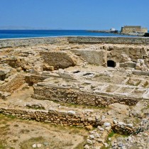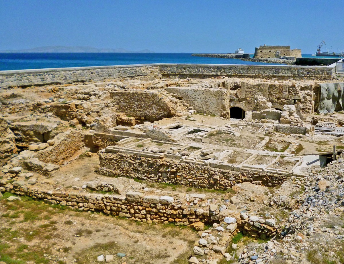 Στο πάλαι ποτέ Κάστρο, στη θέση που σήμερα βρίσκεται η πόλη του Ηρακλείου, έχει αποκαλυφθεί πρόσφατα μια πρώιμη φάση των οχυρώσεων, πριν από την εποχή της αραβοκρατίας. Στη θέση Μπεντενάκι, πρόσφατη ανασκαφική έρευνα αποκάλυψε τμήμα του θαλάσσιου οχυρωματικού μετώπου πιθανότατα της πρωτοβυζαντινής πόλης (εικ. 7), που αποτελείται από ένα μνημειωδών διαστάσεων τετράγωνο πυργοοικοδόμημα με εσωτερικές αίθουσες και δεξαμενές νερού, κτισμένο κατά τα πρότυπα των οχυρώσεων της Κυδωνίας. Μέχρι σήμερα μόνο εικασίες μάς επέτρεπαν οι λιγοστές πηγές για τη μορφή της πόλης πριν από την αραβοκρατία, αυτή όμως η σημαντική ανασκαφή (σε συνδυασμό με κάποια άλλα σημεία όπου τμήματα του παλαιοχριστιανικού τείχους έχουν αποκαλυφθεί), επιτρέπει να σχηματίσουμε εικόνα για τη μορφή της παλαιοχριστιανικής πόλης, στη θέση όπου σήμερα βρίσκεται το Ηράκλειο.