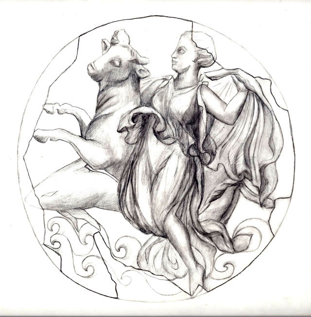 Πρόκειται για το χάλκινο κάτοπτρο των αρχών του 4ου αι. π.Χ., που βρέθηκε σε τάφο πλούσιας γυναίκας της αρχαίας Ερέτριας και φέρει στην επιφάνεια του καλύμματός του τη θαυμάσια παράσταση της Ευρώπης πάνω στον ταύρο. Ο καθρέφτης της Ευρώπης θα παρουσιαστεί την Πέμπτη 23 Ιουλίου στην «αίθουσα του βωμού» (αιθ. 34) και θα παραμείνει εκεί ως την Κυριακή 20 Σεπτεμβρίου.