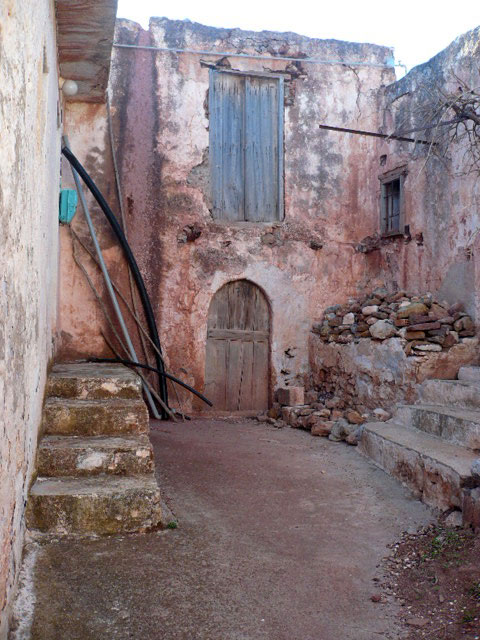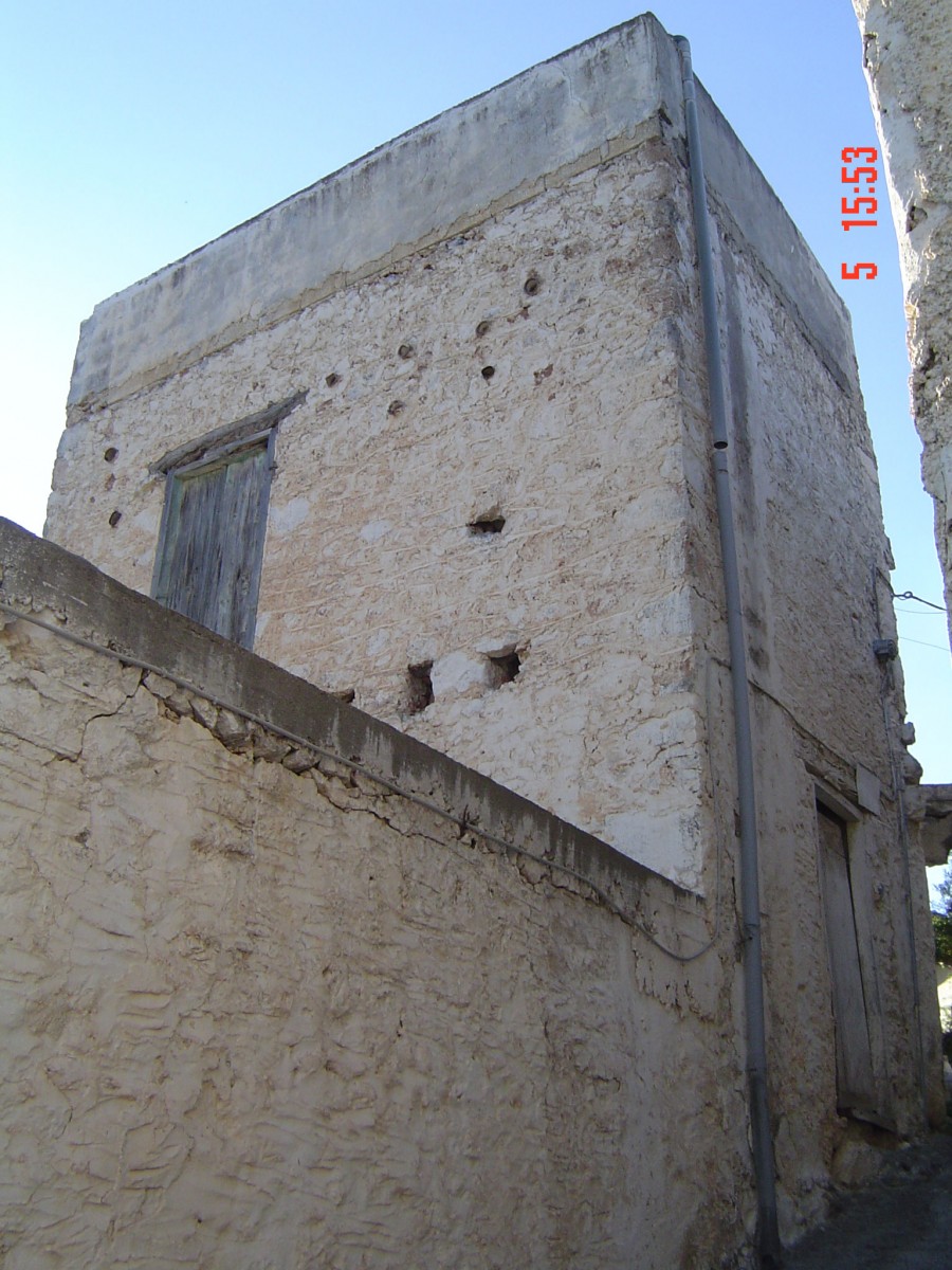 Υπάρχουν στοιχεία που φανερώνουν πως ο αρχικός πυρήνας είχε φρουριακή οργάνωση. Τα στοιχεία αυτά είναι κατ’ αρχήν ο πυκνός ιστός του οικισμού και η επικοινωνία των σπιτιών μεταξύ τους (σημ. 6), όπως αναφέρεται από τους κατοίκους. Σε σπίτια της εξωτερικής πλευράς του οικισμού, σώζονται ακόμα τμήματα τειχών με «σκαρπωτή» μορφή. Χαρακτηριστικό τέτοιο στοιχείο είναι η ενίσχυση της κάτω γωνίας των κτηρίων, με διαπλάτυνση της βάσης και διαμόρφωση των πλευρών με μια λοξή (σκαρπωτή) λιθοδομή από λαξευτή πέτρα. Είναι η καντονάδα, στοιχείο που συνεχίζει να υπάρχει στη λαϊκή αρχιτεκτονική της Κρήτης μέχρι τις αρχές του αιώνα μας. Η χρησιμοποίηση της καντονάδας γίνεται για λόγους μορφολογικούς, για καλύτερη θεμελίωση και εξασφάλιση μεγαλύτερης αντισεισμικότητας στο κτίριο.