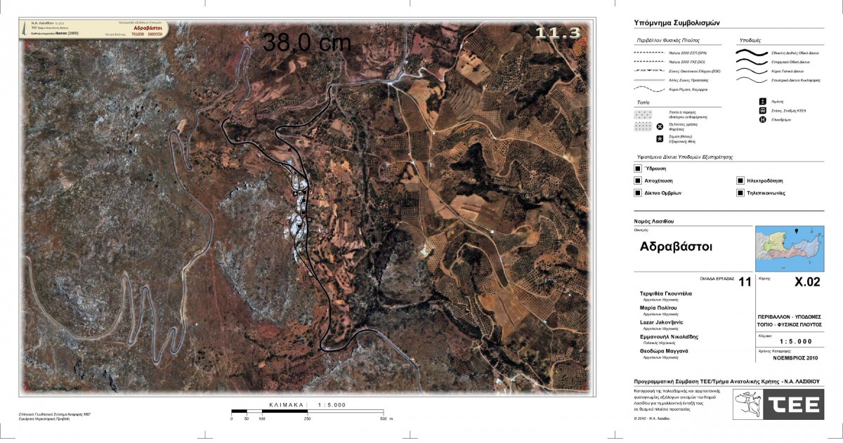 Τον Νοέμβριο του 2010 το Τμήμα Ανατολικής Κρήτης του Τεχνικού Επιμελητηρίου Ελλάδος συγκέντρωσε μία ομάδα μηχανικών στοχεύοντας στην έρευνα των χαρακτηριστικών των λασιθιώτικων οικισμών (σημ. 1). Οι οικισμοί που μελετήθηκαν από την ομάδα στην οποία συμμετείχε η γράφουσα ήταν το Σταυροχώρι Ιεράπετρας, το Καρύδι και οι Αδραβάστοι Σητείας. Το πρώτο στάδιο περιλάμβανε την περιγραφή και ανάλυση του ευρύτερου περιβάλλοντος – φυσικού και ανθρωπογενούς και την ιστορική, παραγωγική και οικονομική αναγνώρισή τους. Το δεύτερο στάδιο επικεντρωνόταν στα πολεοδομικά και αρχιτεκτονικά ιδιώματα των συνόλων και συγκεκριμένα στην αξιολόγηση του πολεοδομικού πλούτου τους, στην οργάνωση του ιστού, στην τυπολογία των οικοδομικών νησίδων και στη φυσιογνωμία των κτισμάτων. Η μελέτη ολοκληρώθηκε με τη διατύπωση προδιαγραφών για την αναζήτηση της ιστορικής τους συνέχειας.