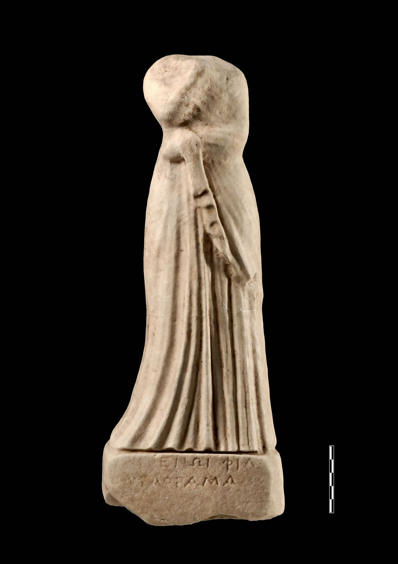 Πρόκειται για σώμα γυναικείου αγαλματιδίου, από λευκό ασβεστόλιθο, με ενεπίγραφη βάση, το οποίο προέρχεται από τον επονομαζόμενο «Μικρό Ναό» των Γιτάνων και χρονολογείται στους ελληνιστικούς χρόνους. Σύμφωνα με την επιγραφή, αφιερώθηκε στην Παρθένο από τη Φίλα μετά από όνειρο που εκείνη είδε: [ΠΑΡ]ΘΕΝΩΙ ΦΙΛ[Α] / [Κ]ΑΤΑ ΟΡΑΜΑ.