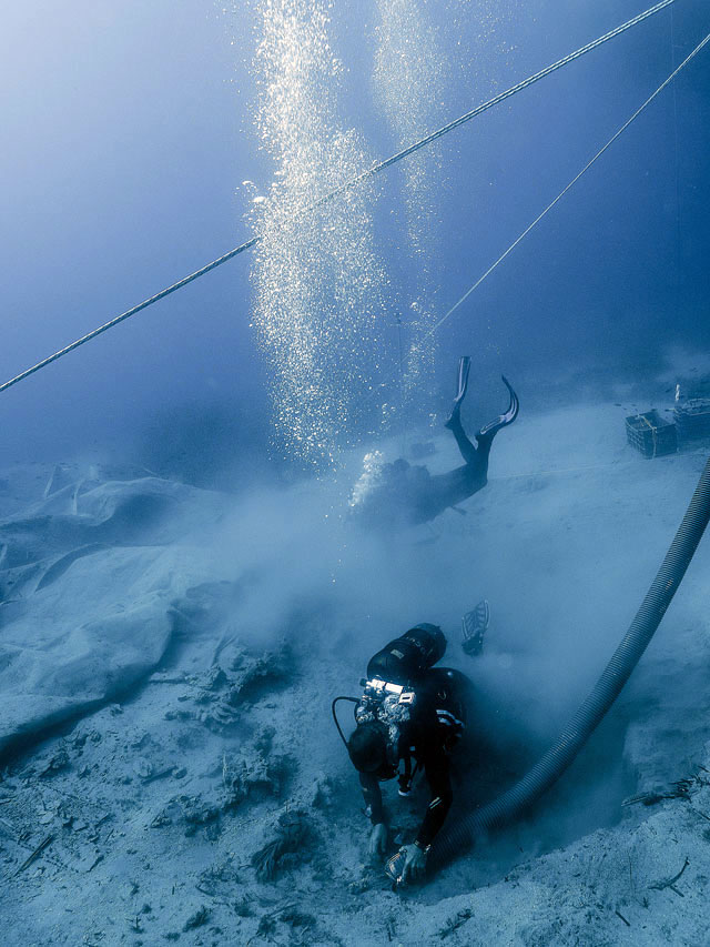 Στην έρευνα συμμετείχαν τέλος από την ομάδα έρευνας του ναυαγίου των Αντικυθήρων οι Brendan Foley, Phil Sort, Gemma Smith, οι οποίοι χρησιμοποιούσαν συσκευές κλειστού κυκλώματος παροχής αέρα, οι οποίες δίνουν πολύ μεγαλύτερο χρόνο κατάδυσης σε σχέση με τις συμβατικές καταδύσεις. Η ομάδα συμμετείχε στην έρευνα αποκομίζοντας ανασκαφική εμπειρία και παράλληλα συνέβαλε στην πρόοδο της ανασκαφικής έρευνας.