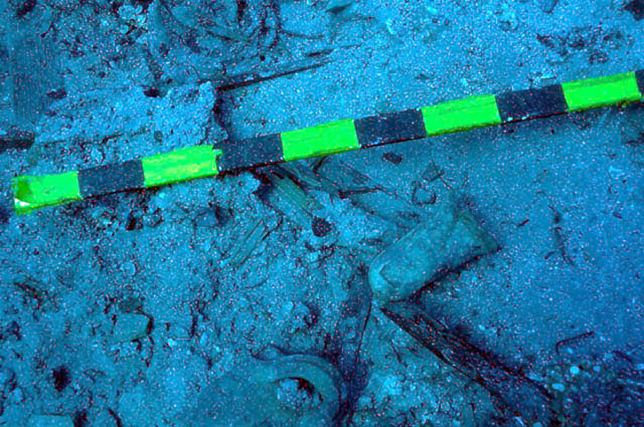 Στην τομή διαστάσεων 5×5 μέτρων που ορίστηκε εντοπίστηκαν τμήματα ξύλων, που ίσως να σχετίζονται με το σκαρί του πλοίου, αλλά η διατήρησή τους δεν είναι ιδιαίτερα καλή. Από το χώρο της τομής ανελκύστηκαν αντικείμενα που σχετίζονται με τη διαβίωση και τη λειτουργία του πλοίου, όπως ο δίσκος μίας ξύλινης τροχαλίας και μία ακέραιη γυάλινη κλεψύδρα, αρκετά θραύσματα πιάτων και σκευών καθημερινής χρήσης, αλλά και προσωπικά αντικείμενα όπως μία γυάλινη διακοσμητική σφραγίδα που φέρει το γράμμα «Β» ή ακόμα ένα οστέινο πιόνι σκακιού και θραύσματα οστέινου χτενιού.