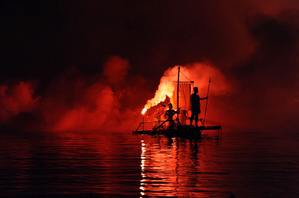 Η βραδιά πλαισιώνεται από μουσικούς, χορευτές, δύτες, μαζορέτες και πυροτεχνήματα, ενώ ακολουθεί πάρτι στην ακτή που διαρκεί μέχρι πρωίας.