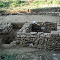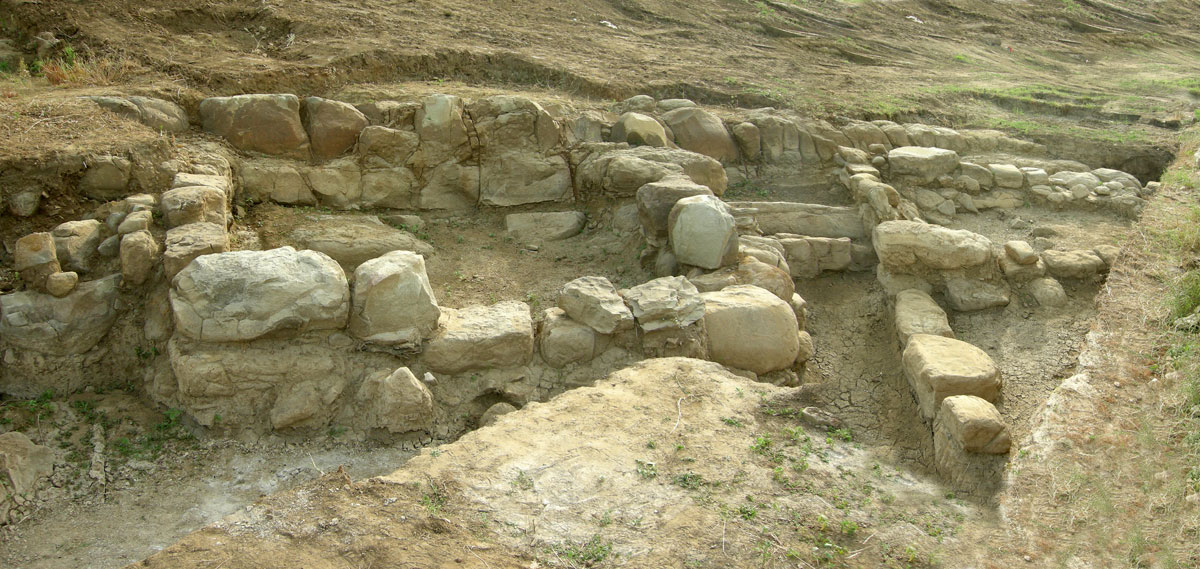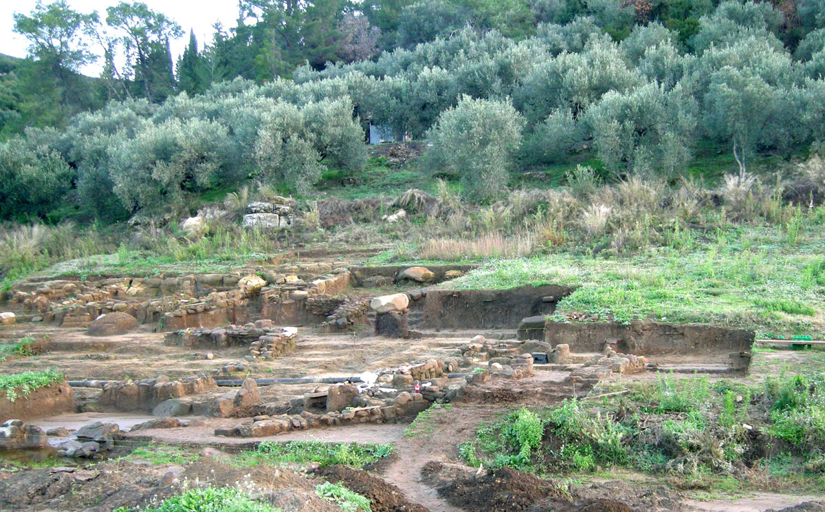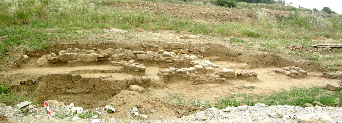 Μετά τον εντοπισμό επιφανειακών αρχαιοτήτων πραγματοποιήθηκε σωστική ανασκαφική έρευνα, που διήρκεσε από τον Νοέμβριο του 2013 έως τον Μάιο του 2015. Σε αυτό το διάστημα αποκαλύφθηκαν διαδοχικά και σε διαφορετικά σημεία, ανάλογα με την πορεία των εργασιών, οκτώ κτήρια κατά μήκος της νότιας πλαγιάς του λόφου του Προφήτη Ηλία. Συγκεκριμένα σε έκταση μήκους περίπου 150 μ. εντοπίστηκαν και ερευνήθηκαν τέσσερα οικιστικά σύνολα, αποτελούμενα –εκτός από μία περίπτωση– από κτήρια μικρών διαστάσεων χτισμένα από επιχώρια υλικά και σωζόμενα στο ύψος της θεμελίωσης. Η ύπαρξη μεγάλων αποθηκευτικών πίθων (ενός ακέραιου κατά χώραν και πλήθους θραυσμάτων) και η ταύτιση ενός ληνού για τη γλευκοποίηση οίνου υποδηλώνουν τον αγροτικό και μεταποιητικό χαρακτήρα των εγκαταστάσεων. Ιδιαίτερο ενδιαφέρον παρουσιάζει το γεγονός πως τα κτήρια εντοπίστηκαν σε αρκετή απόσταση μεταξύ τους, κάτι που σημαίνει πως δεν οικοδομήθηκαν ως σύνολο αλλά περισσότερο ως αυτόνομες μονάδες.