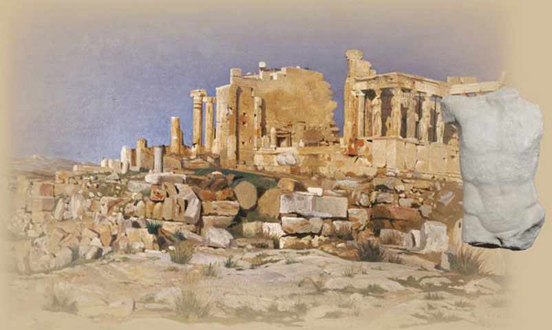 Τριάντα πέντε μαρμάρινα γλυπτά του Εθνικού Αρχαιολογικού Μουσείου, πολλά από τα οποία παρουσιάζονται στην έκθεση για πρώτη φορά, συνδιαλέγονται με τα έργα των περιηγητών συμπληρώνοντας το γοητευτικό τους αφήγημα για τη μνημειακή τοπογραφία της πόλης. Τη μουσειακή εμπειρία συμπληρώνουν τα μουσικά ακούσματα από τις πατρίδες των περιηγητών, αλλά και η ελληνική μουσική, όπως αυτή που κατέγραψε επισκεπτόμενος την Αθήνα το 1874-5 ο Γάλλος συνθέτης και θεωρητικός της μουσικής L.A. Bourgault-Ducoudray.