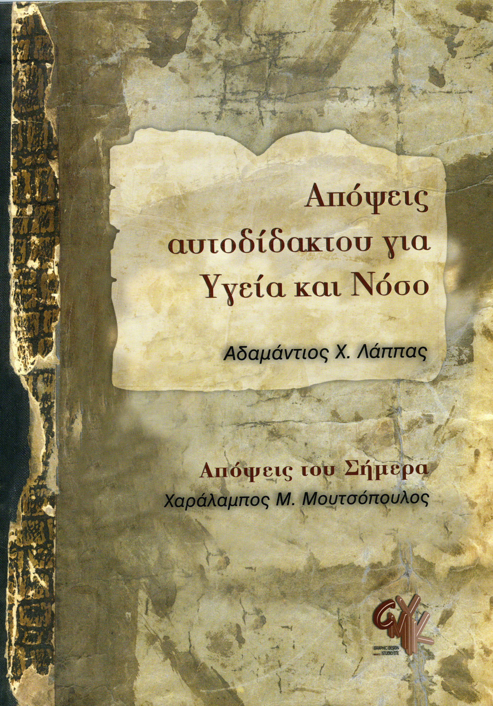 2. Αδαμάντιος Χ. Λάππας, Απόψεις αυτοδίδακτου για Υγεία και Νόσο, Χ.Μ. Μουτσόπουλος, Απόψεις του Σήμερα, CMYK, Αθήνα 2013, 95 σελ., ISBN 978-618-80270-7-7.
