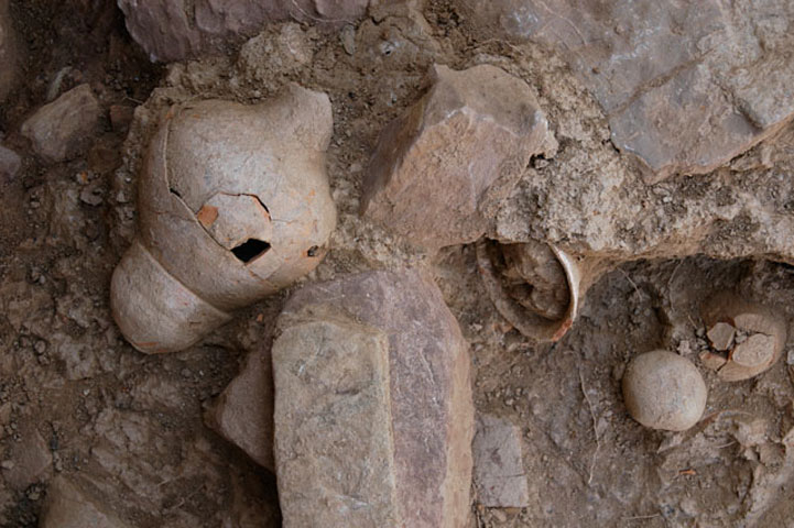 Τα αποσπάσματα τοιχογραφιών, που ήρθαν φέτος στο φως, αποδίδουν φυτικά, ζωικά αλλά και αρχιτεκτονικά θέματα σε λεπτό κονίαμα και φανερώνουν μια ιδιαίτερη εκλέπτυνση.