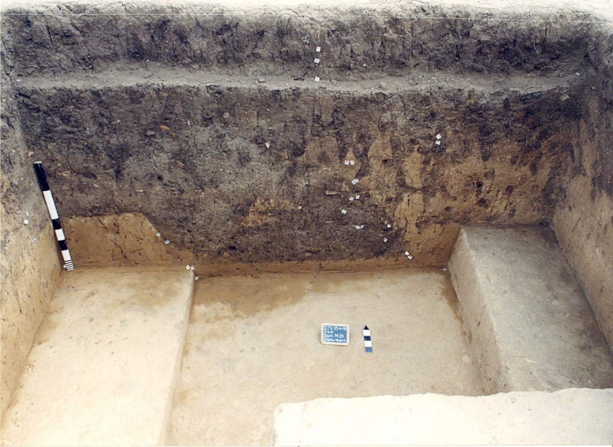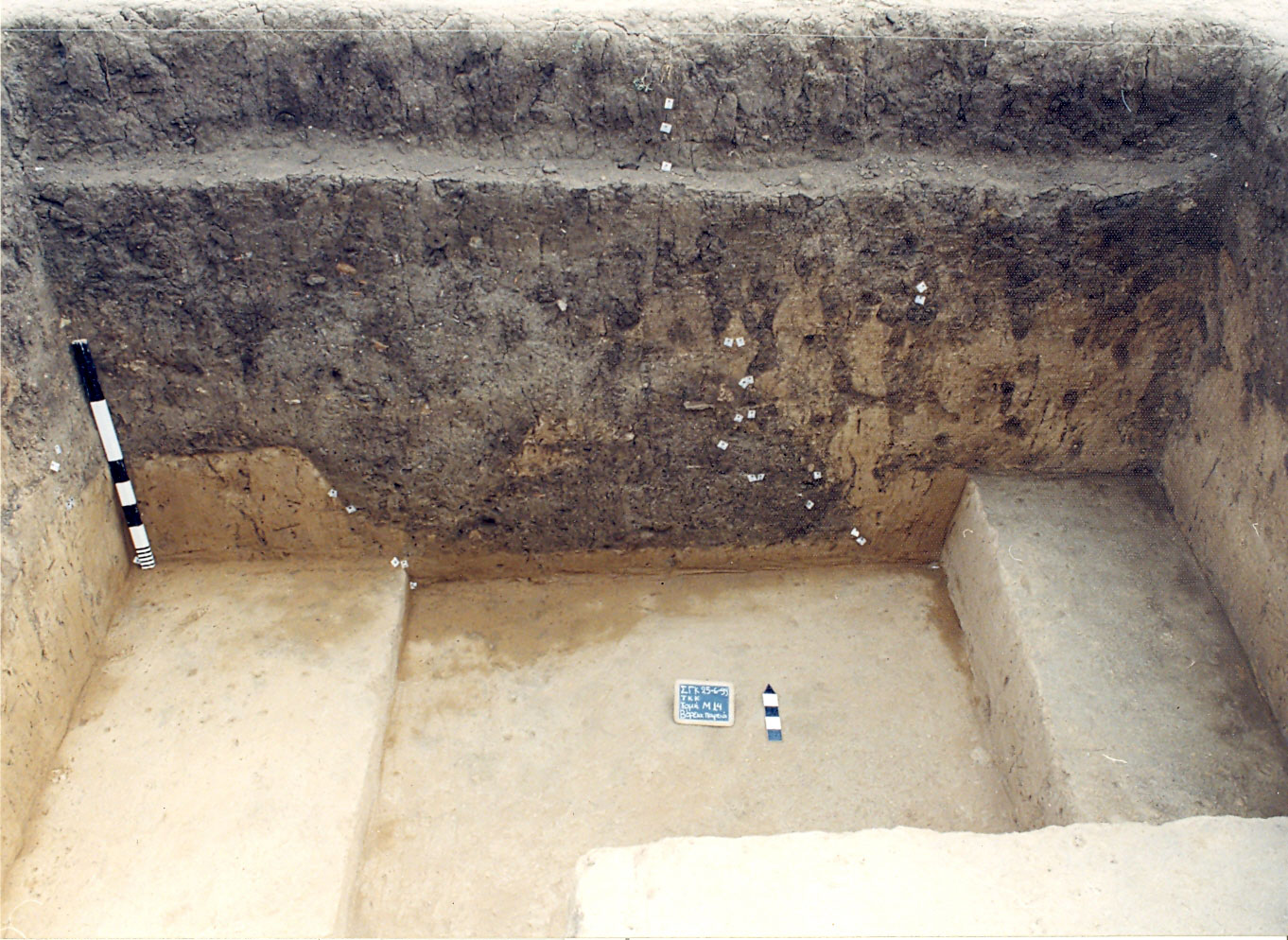 Στη στρωματογραφία του ανασκαμμένου χώρου δεν διαπιστώνονται σαφείς και εκτεταμένες επιφάνειες χρήσης. Τα τέσσερα προϊστορικά στρώματα που έχουμε διακρίνει υπαγορεύονται περισσότερο από τα ποικίλα βάθη διάνοιξης των λάκκων και τάφρων καθώς και από τα βάθη ανεύρεσης των ταφών καύσεων, τα οποία αντανακλούν την ύπαρξη πολλών και διαφορετικών επιφανειών. Οι επιφάνειες αυτές είναι περισσότερο εμφανείς σε επίπεδο μεμονωμένων τομών ή πιο εκτεταμένων περιοχών, όπου πολλές από τις κατασκευές και χρήσεις εμφανίζουν μεταξύ τους σαφή χρονική διαδοχή. Αντίθετα, ο χρονικός συσχετισμός στο σύνολο της ανασκαμμένης περιοχής εμφανίζει ιδιαίτερες δυσκολίες (εικ. 4).