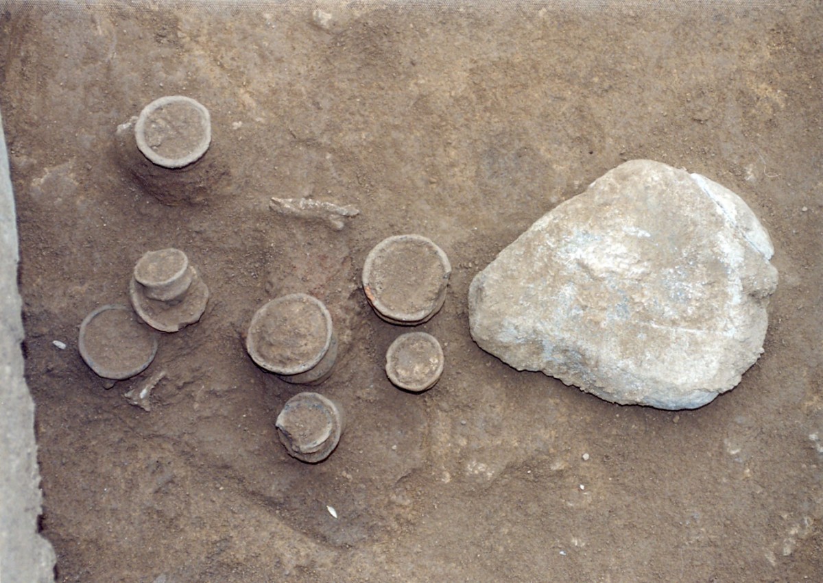 α) Από το σύνολο των χαρακτηριστικών των λάκκων (διαστάσεις, κατασκευαστικά χαρακτηριστικά, εσωτερική στρωματογραφία, περιεχόμενο) και τους μεταξύ τους συσχετισμούς, προκύπτει πως η κοινή δομή που ενώνει τις παρατηρούμενες συνδέσεις είναι μια αντίληψη (πιο έντονη στην πρώιμη φάση χρήσης του χώρου) που συνδέει τη γονιμότητα με τους νεκρούς και οδηγεί σε πρακτικές που αποσκοπούν στη διασφάλιση της τροφής. Αξιοσημείωτη η παρουσία του μυλόλιθου, ως πιθανού συμβόλου γονιμότητας, σε λάκκους με σύνολα μικρογραφικών αγγείων, οι οποίοι φαίνεται να συνδέονται με προσφορές προς τους νεκρούς, παραπέμποντας παράλληλα σε γεγονότα εξαιρετικής σημασίας (εικ. 6).