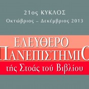 Ξεκίνησαν οι εγγραφές για τον 27ο Κύκλο Μαθημάτων (Οκτώβριος-Δεκέμβριος 2015) του Ελεύθερου Πανεπιστημίου της Στοάς του Βιβλίου, στον οποίο θα διδάξουν επίλεκτα μέλη της πανεπιστημιακής κοινότητας για θέματα της ειδικότητάς τους που αναφέρονται στην ελληνική γλώσσα, στα μεγάλα μνημεία της Δυτικής Ελλάδας, στην τέχνη του κινηματογράφου, στη νεοελληνική ποίηση, στη φιλοσοφία, στην τέχνη του χορού.