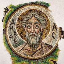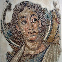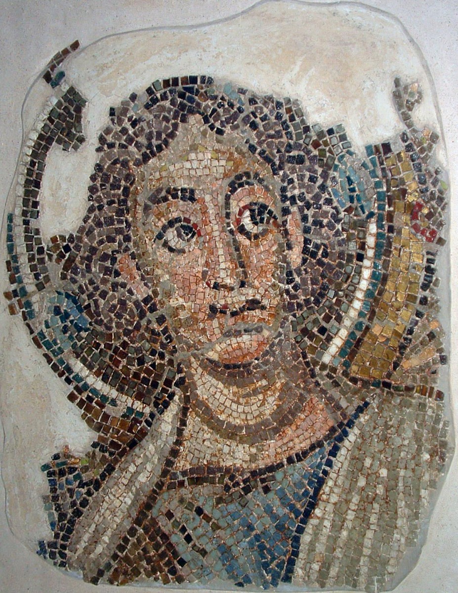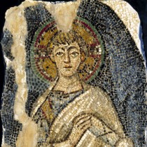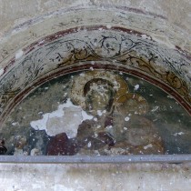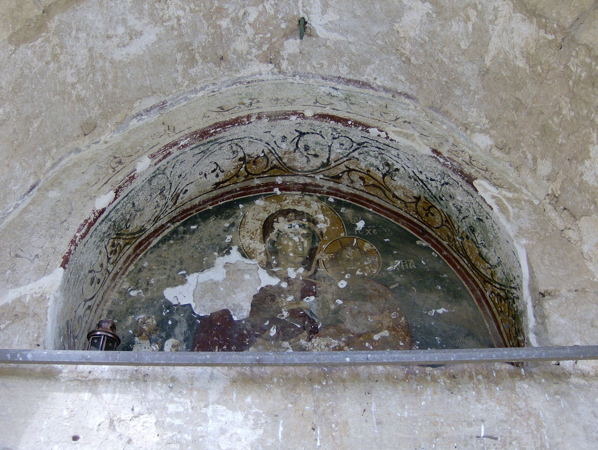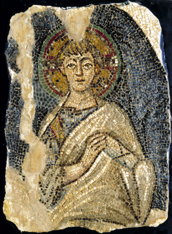 Η κεντρική αψίδα του ναού, που χρονολογείται στη Μέση Βυζαντινή περίοδο, ήταν διακοσμημένη με ψηφιδωτά από τον 6ο αι μ.Χ., που αποτελούν πολύ σημαντικά έργα τέχνης και από τα λιγοστά εναπομείναντα πρωτοχριστιανικά ψηφιδωτά παγκοσμίως. Σε αυτά εικονίζεται η Θεοτόκος ένθρονη περιβαλλόμενη από «φωτεινή δόξα», στοιχείο το οποίο συνήθως περιβάλλει τον Χριστό στις σκηνές της Μεταμόρφωσης και της Ανάληψης. Η Θεοτόκος κρατά στα γόνατά της τον Χριστό. Τη δόξα πλαισίωναν δύο φοινικόδεντρα και δύο αρχάγγελοι με σκήπτρο. Την παράσταση περιέβαλλε πλατιά ζώνη με γεωμετρικό και φυτικό διάκοσμο και με δεκατρία μετάλλια, όπου εικονίζονταν στηθαίοι ο Χριστός ή σταυρός και οι δώδεκα απόστολοι.