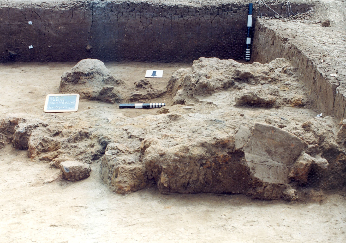 γ) Η διαχείριση των καμένων αρχιτεκτονικών καταλοίπων, η οποία συνδέεται άμεσα με τον τρόπο αντικατάστασης των οικημάτων, φαίνεται να διαφοροποιείται κατά οικισμό ή κατά περιοχή και όχι τόσο κατά χρονική περίοδο. Με βάση τα μέχρι τώρα δεδομένα, θα μπορούσαν να αναγνωριστούν τρεις τρόποι διαχείρισής τους: α) Ισοπέδωση, με παράλληλη απομάκρυνση ενός μέρους τους σε λάκκους εντός του οικιστικού χώρου και θεμελίωση των νέων κτισμάτων πάνω τους. β) Εγκατάλειψη των καμένων οικημάτων και κτίσιμο των νέων σε άλλη, διπλανή ίσως θέση, πρακτική που περιλαμβάνει κάποιας μορφής οριζόντια μετακίνηση της κατοίκησης. γ) Κάθετη ανάπτυξη της κατοίκησης, σε συνδυασμό με απομάκρυνση των καταλοίπων από τον οικιστικό χώρο. Η ανασκαφική εικόνα των οικισμών αυτών χαρακτηρίζεται από πολύ μικρό όγκο υλικού εντός του οικιστικού χώρου και παράλληλη παρουσία ποικίλων ποσοτήτων σε λάκκους εντός του οικισμού ή στην περιφέρειά του. Καθώς όμως παρόμοια εικόνα θα μπορούσε να προκύψει και από άλλες τεχνολογικές και κοινωνικές πρακτικές, όπως από περιορισμένη χρήση του πηλού στην αρχιτεκτονική ή από διαφοροποίηση στον τρόπο εγκατάλειψης και αντικατάστασης των οικημάτων, συμπεριλαμβανομένου και του μη ολοκληρωτικού καψίματός τους, η συγκεκριμένη εκδοχή (όπως και αυτή της οριζόντιας μετακίνησης), απαιτεί μελέτη του υπάρχοντος υλικού αλλά και περαιτέρω ανασκαφική διερεύνηση, μέσω ειδικών ερευνητικών προγραμμάτων. δ) Παρουσία σημαντικού αριθμού κινητών ευρημάτων κάτω από τα καμένα αρχιτεκτονικά κατάλοιπα, κάποια από τα οποία βρίσκονται in situ.