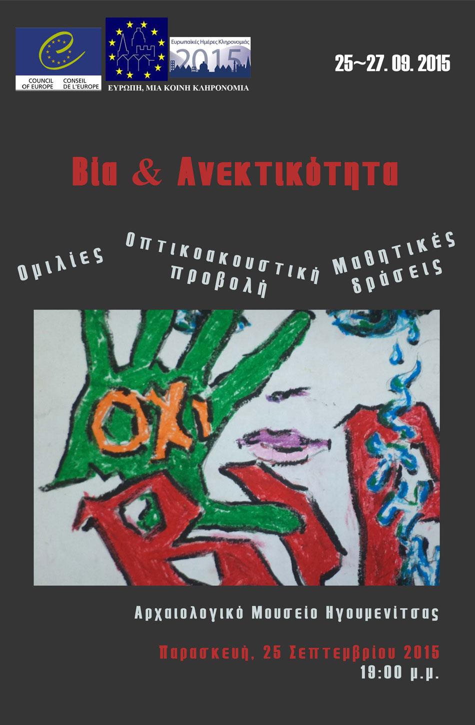 «Βία και Ανεκτικότητα» είναι το θέμα που επιλέχθηκε για τη διετία 2015-2016, ένα θέμα τόσο επίκαιρο και συνάμα διαχρονικό, με το οποίο «δίνεται η αφορμή να εξεταστεί ο ιστορικός ρόλος της έννοιας της ανεκτικότητας ως καθοριστικού παράγοντα του πολιτιστικού και πολιτισμικού γίγνεσθαι. Ο σεβασμός των πεποιθήσεων του Άλλου, η αποδοχή του μη όμοιου και η δυνατότητα της ελεύθερης έκφρασης της ατομικής ή συλλογικής ταυτότητας είναι μία κατάκτηση που έχει επιτευχθεί τουλάχιστον από την εποχή του Διαφωτισμού. Η ανεκτικότητα αντανακλά την ιδανικά δημοκρατική κοινωνία, ενώ η βία την αντίσταση σε αυτό το ιδανικό».