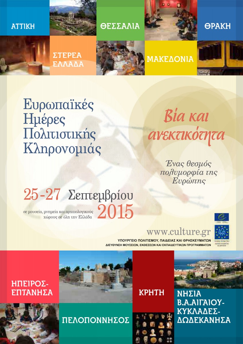 Ο εορτασμός των Ευρωπαϊκών Ημερών Πολιτιστικής Κληρονομιάς για το 2015-2016 είναι αφιερωμένος στο δίπολο «Βία και Ανεκτικότητα». Ζήτημα διαχρονικό, πολυδιάστατο και οδυνηρά επίκαιρο, είτε αφορά την ιδεολογία, είτε την πράξη. Μπορεί να αφορά την πολιτική ιδεολογία, την κοινωνική οργάνωση, αλλά και την προσωπική στάση απέναντι σε οτιδήποτε είναι ξένο ή παρεκκλίνει από τις νόρμες και τα «καθεστώτα» κάθε εποχής.