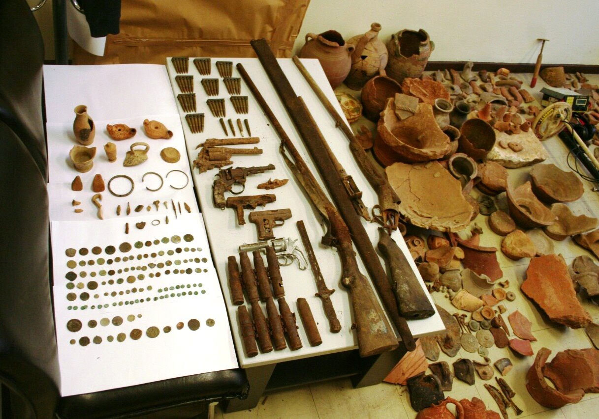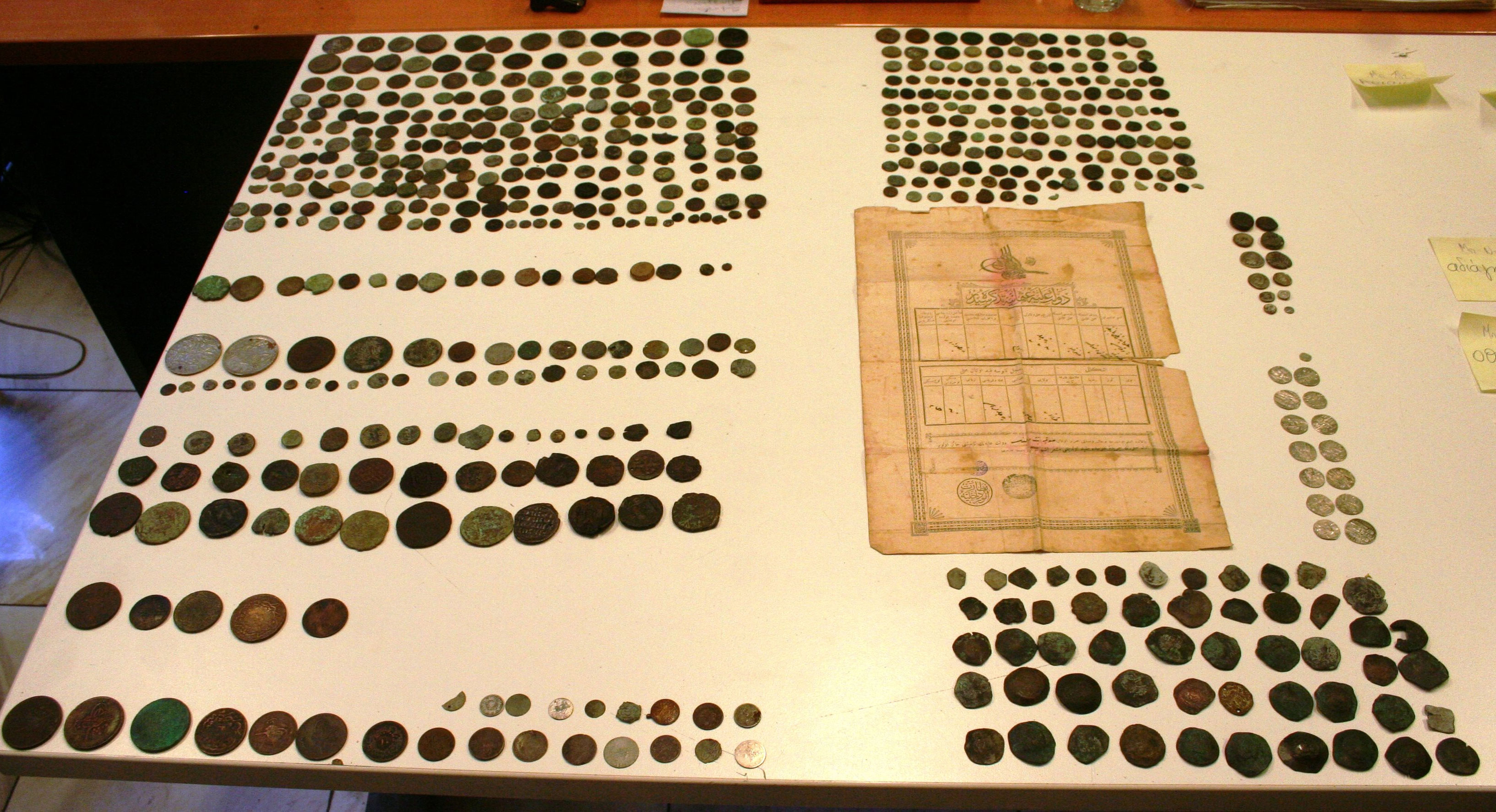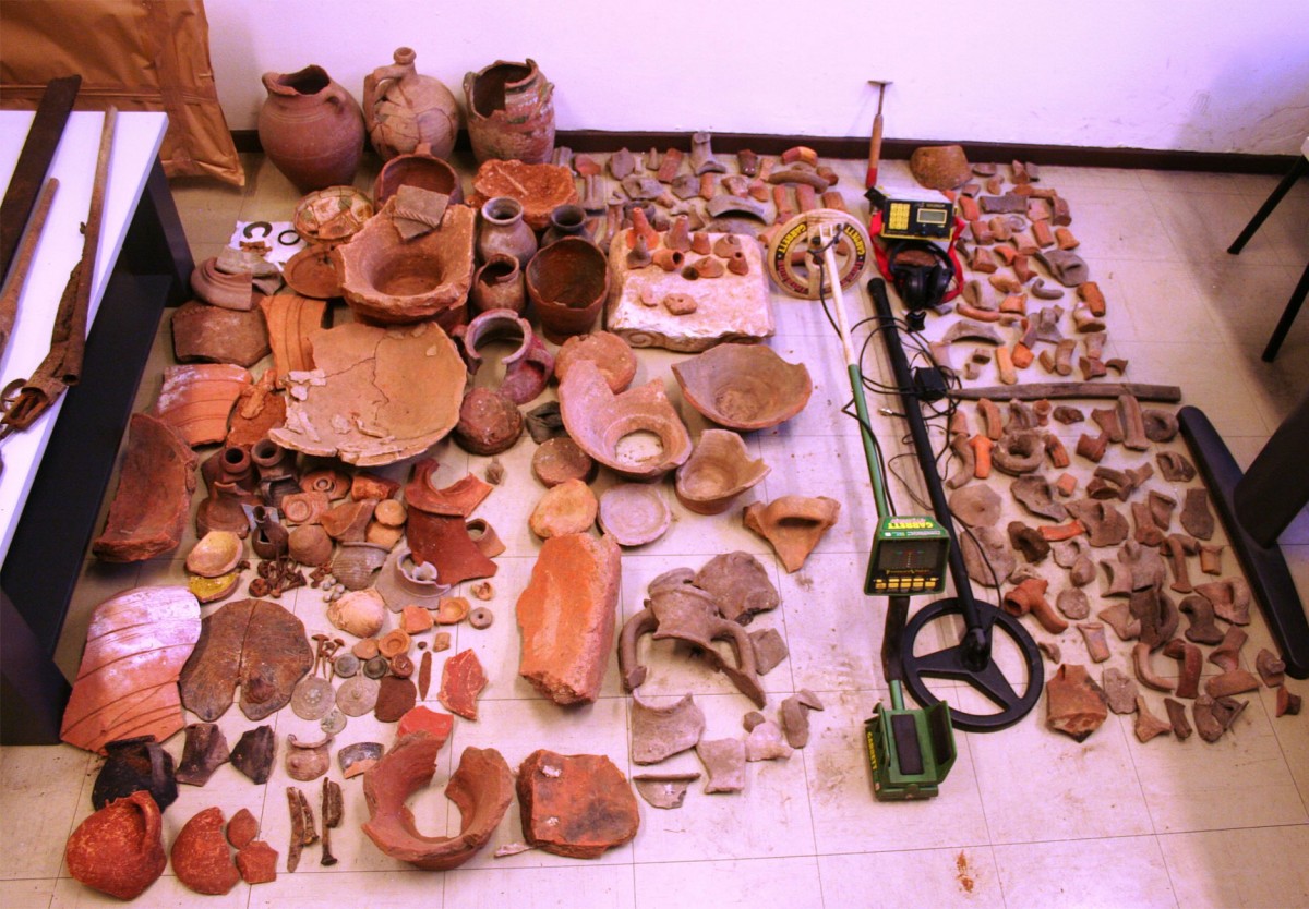 Συγκεκριμένα, σύμφωνα με την ανακοίνωση της Αστυνομίας, κατασχέθηκαν, μεταξύ άλλων: 715 αρχαία νομίσματα (504 αρχαιοελληνικών και ρωμαϊκών χρόνων, 120 βυζαντινών χρόνων, 73 οθωμανικών χρόνων, 18 αδιάγνωστα), πέντε αγγεία, μεγάλος αριθμός τεμαχίων αρχαίων αμφορέων και αγγείων, οκτώ στάμνες, χύτρες, κανάτες και δοχεία, ένα οθωμανικό έγγραφο, έξι τεμάχια από πίθους, 15 όστρακα από πίθους, τρία πινάκια, ένα τεμάχιο πινακίου, ένα παλαιοχριστιανικό κιονόκρανο, δύο πήλινα λυχνάρια, μία αιχμή σιδερένιου δόρατος, επτά αιχμές βελών, μία χάλκινη αιχμή τόξου, ένα ηλιακό ρολόι, έξι σφαιρίδια, ένα πώμα από πυξίδα, ένα πήλινο κυκλικό σφοντύλι, μία μικρογραφία ληκύθου, ένα χάλκινο δαχτυλίδι, τέσσερα γυάλινα και χάλκινα βραχιόλια βυζαντινής εποχής, καθώς και πλήθος διαφόρων γυάλινων, πήλινων, μολύβδινων, χάλκινων και σιδερένιων αντικειμένων αρχαιολογικής αξίας.