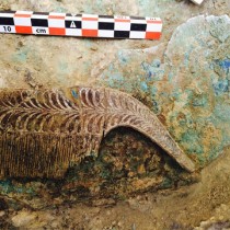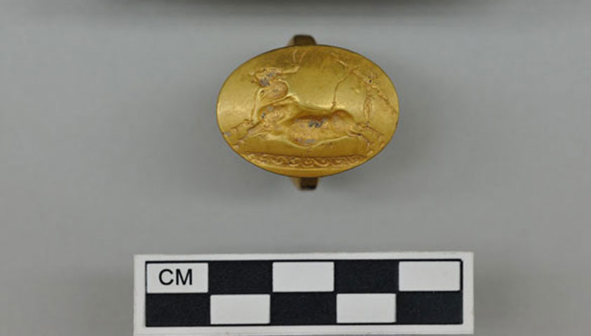 Ελεφαντοστό: Διάφορα κομμάτια ελεφαντοστού, το ένα απεικονίζει γρύπα με μεγάλα φτερά, το άλλο λέοντα που επιτίθεται σε γρύπα, καθώς επίσης και έξι ελεφαντοστέινα κτένια.
