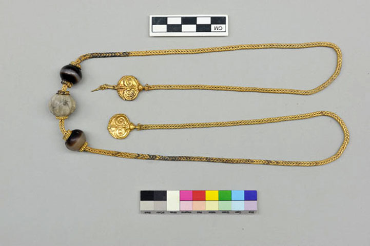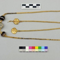 Χρυσά: Τέσσερα ακέραια χρυσά σφραγιστικά δακτυλίδια∙ δύο συνθλιμμένα χρυσά κύπελλα, ένα ασημένιο κύπελλο με χρυσό χείλος και μία χρυσή αλυσίδα μήκους 0,76 μ., τα άκρα της οποίας καταλήγουν σε φύλλα κισσού, καθώς και αμέτρητες χρυσές ψήφοι.