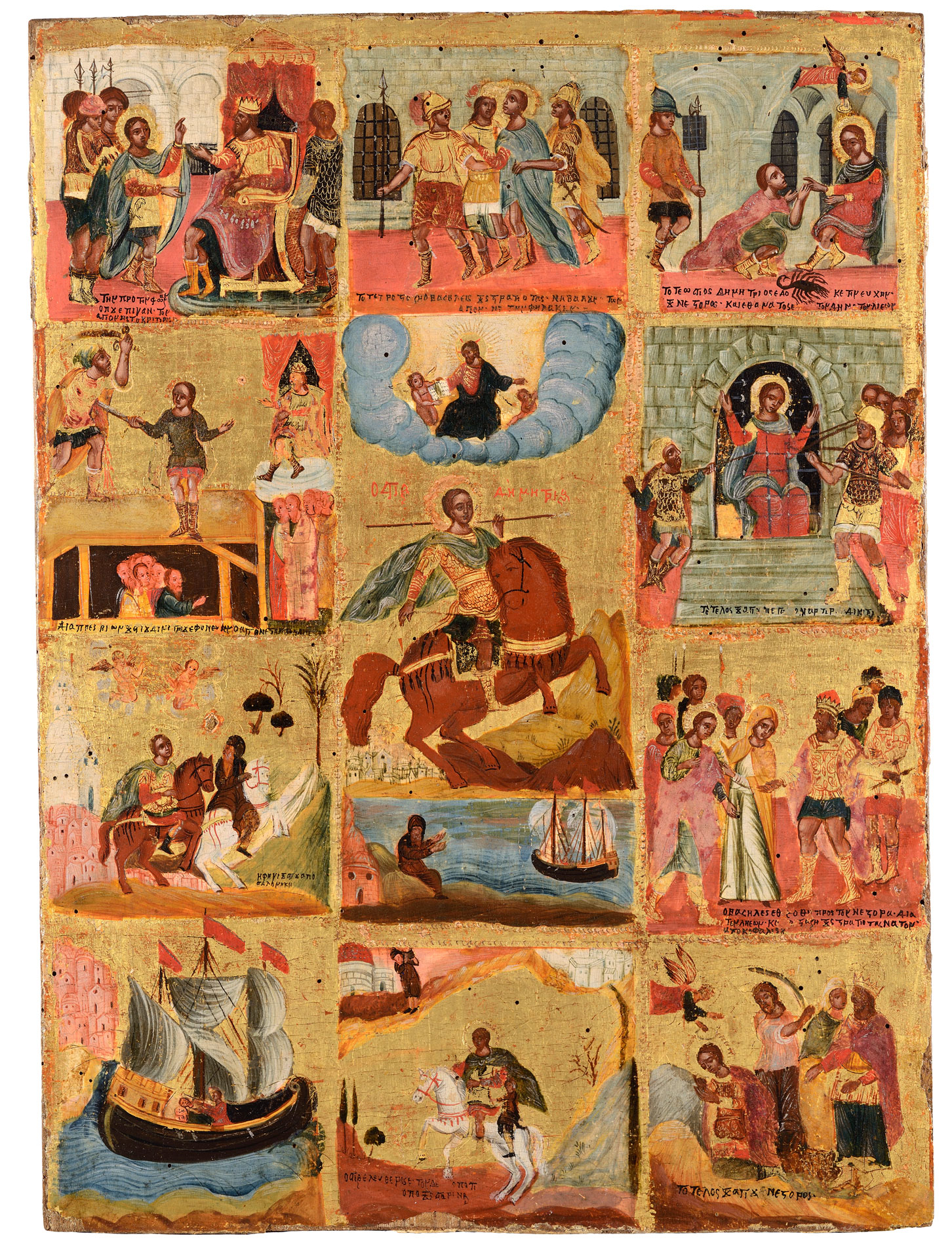 Τα έργα εκκλησιαστικής τέχνης αποτελούν το αριθμητικά και ποιοτικά ισχυρότερο τμήμα της συλλογής. Για την έκθεση επιλέχθηκαν κρητικές και επτανησιακές δημιουργίες, καθώς και ποικίλα δείγματα της θρησκευτικής ζωγραφικής, της κεντητικής και της αργυροχοΐας της ηπειρωτικής Ελλάδας. Στο σύνολό τους συγκροτούν ένα πανόραμα των καλλιτεχνικών τάσεων και των λατρευτικών πρακτικών που κυριάρχησαν στις περιοχές με ορθόδοξους χριστιανικούς πληθυσμούς, μετά την Άλωση της Κωνσταντινούπολης.