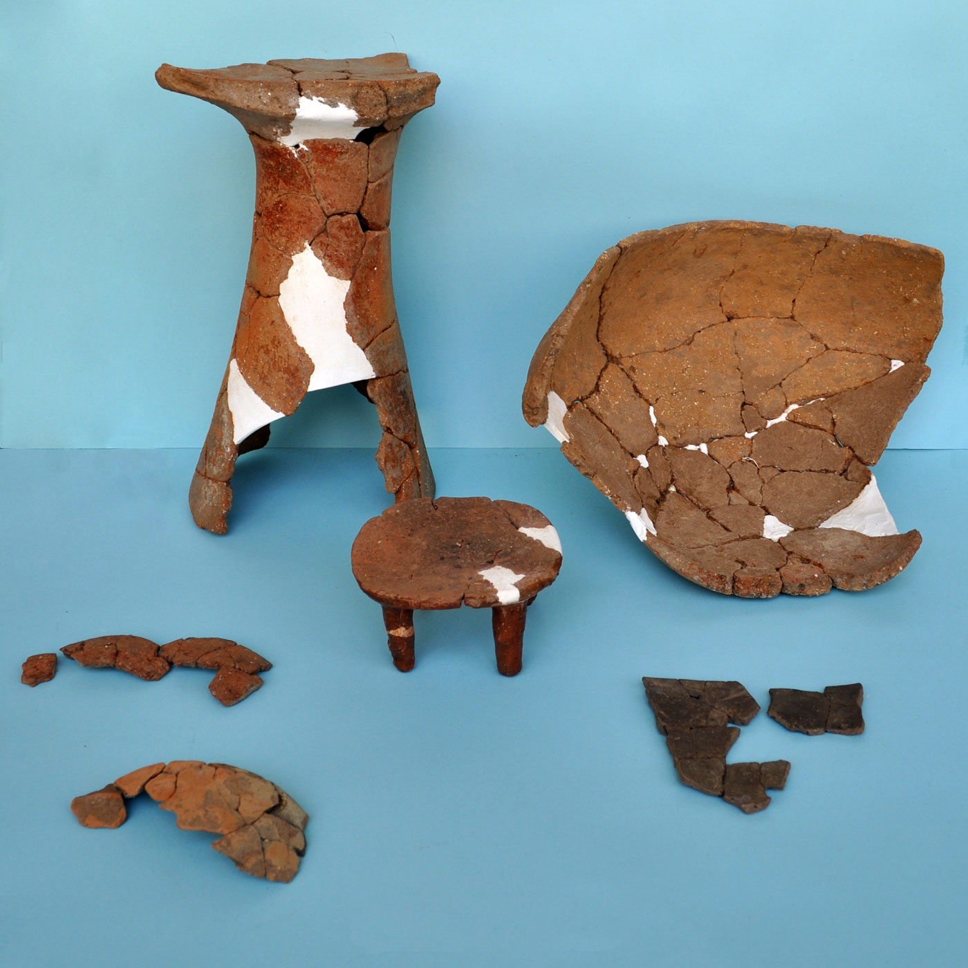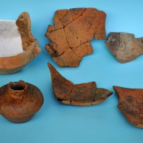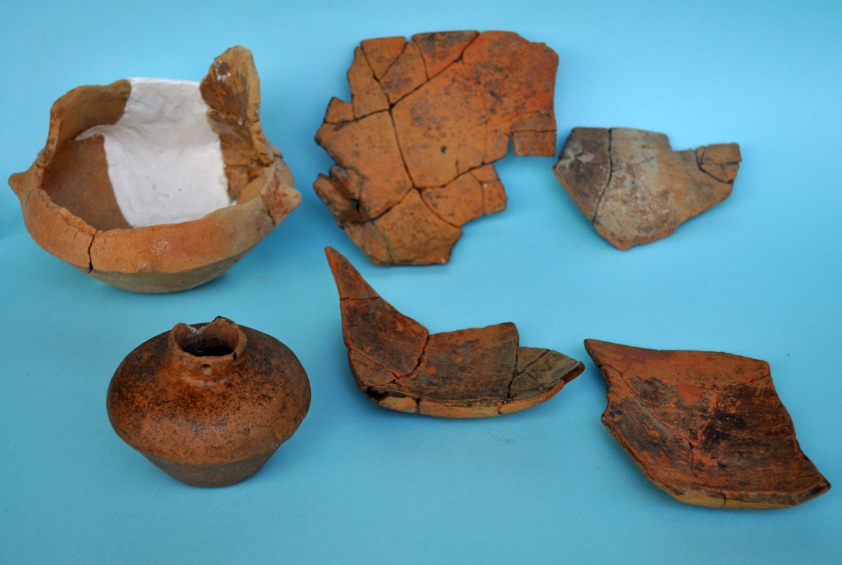 Από τις ταφές καύσεων προέκυψαν 47 αγγεία, από τα οποία 9 ακέραια ή σχεδόν ακέραια και 38 τμήματα (μεγάλα μέρη ή όστρακα). Το σχήμα που κυριαρχεί είναι αυτό της φιάλης (31 αγγεία), ενώ ιδιαίτερο ενδιαφέρον εμφανίζει και η συνήθεια μετατροπής, με κόψιμο, μεγάλων «αμφορέων» σε φιάλες (4 αγγεία). Λίγα είναι τα μεγάλα ανοιχτά αγγεία (λεκανίδες ή πιθοειδή), όπως και τα μικρά κλειστά με λαιμό και οι «σκύφοι». Συναντώνται, ακόμη, μία τράπεζα και ένα τμήμα «ταψιού» (εικ. 3, 4).