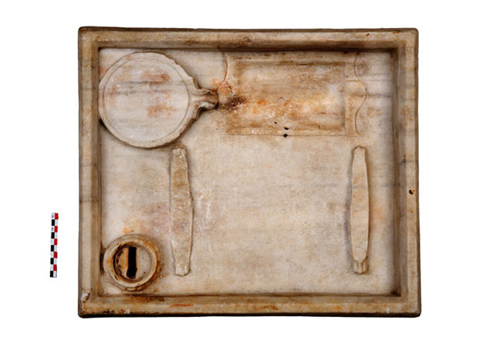 «Το μαρμάρινο σκεύος παραδόξου χρήσεως» αναδύθηκε τη Δευτέρα 23 Νοεμβρίου στην «αίθουσα του βωμού» (αίθ. 34) για να παραμείνει εκεί ως την Κυριακή 3 Ιανουαρίου 2016.