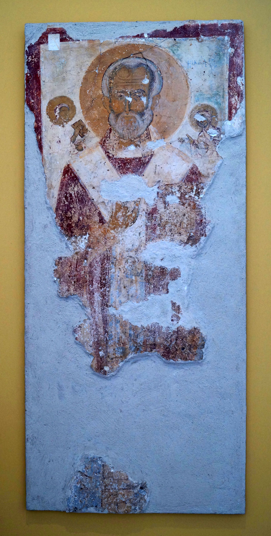 »Η παράσταση είναι λιτή και συμμετρική. Η σχηματοποιημένη, γραμμική και επίπεδη μορφή του αγίου Νικολάου, με τα μεγάλα και εκφραστικά μάτια, τοποθετεί την τοιχογραφία στις τελευταίες δεκαετίες του 12ου αιώνα.