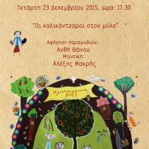 Την Τετάρτη 23 Δεκεμβρίου 2015, και ώρα 17.30, θα πραγματοποιηθεί εκδήλωση με τίτλο «Οι καλικάντζαροι στον μύλο». Παιδιά και ενήλικες θα βιώσουν το πνεύμα των Χριστουγέννων μέσα από την αφήγηση παραμυθιών του Δωδεκαημέρου, τότε που οι καρκάντζαλοι, τα παγανά, παρατούσαν τα πριόνια και τα τσεκούρια τους, ανέβαιναν πάνω στη γη, πείραζαν τους ανθρώπους και τα καμώματά τους γενήκαν παραμύθια.
