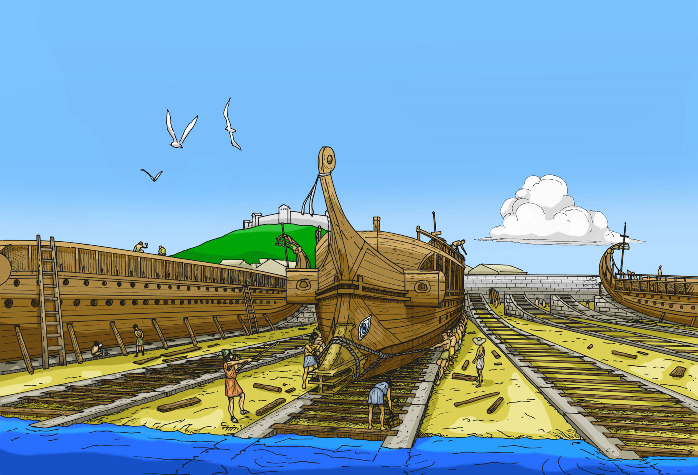 Οι εξαιρετικές καλλιτεχνικές αναπαραστάσεις είναι σχεδιασμένες από τον αρχαιολόγο και μέλος της ομάδας του Zea Harbour Project, Γιάννη Νάκα.