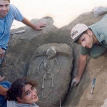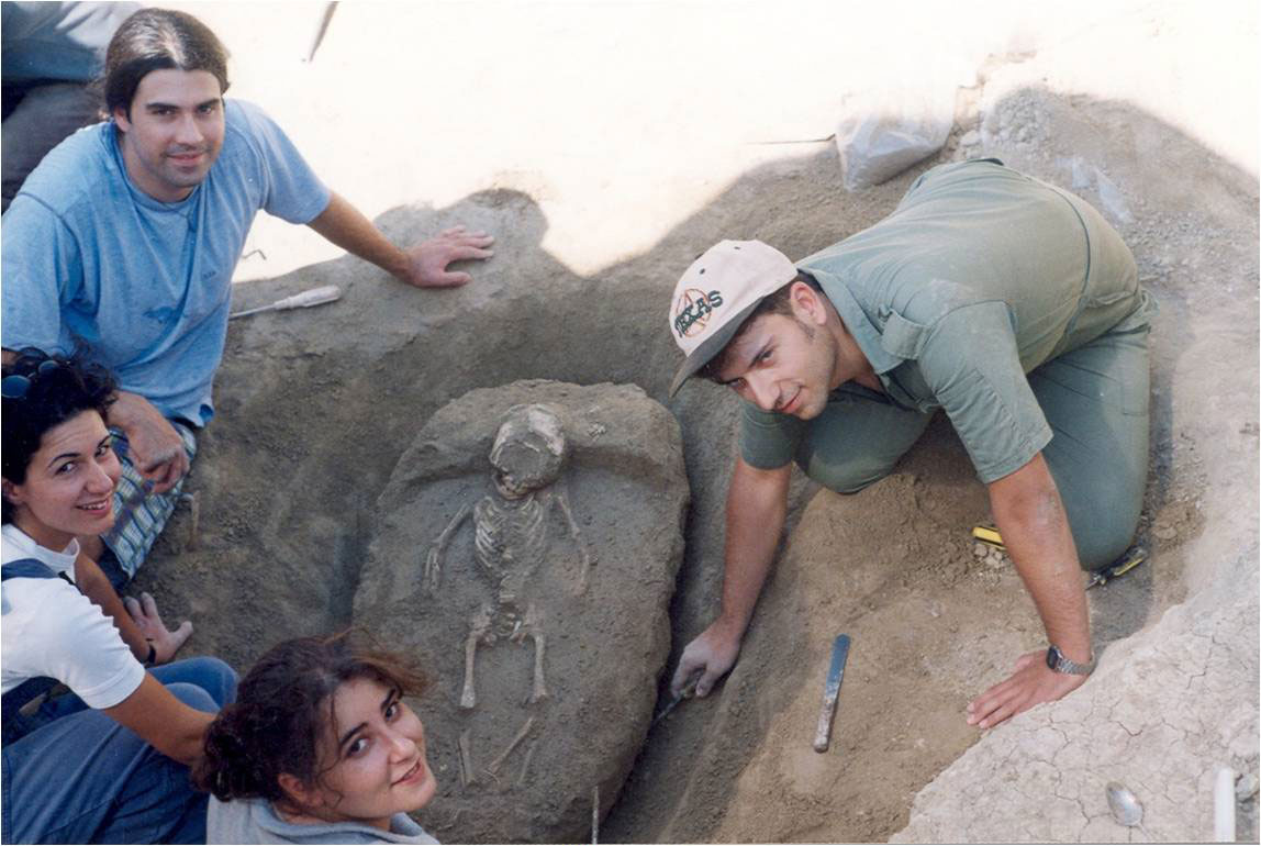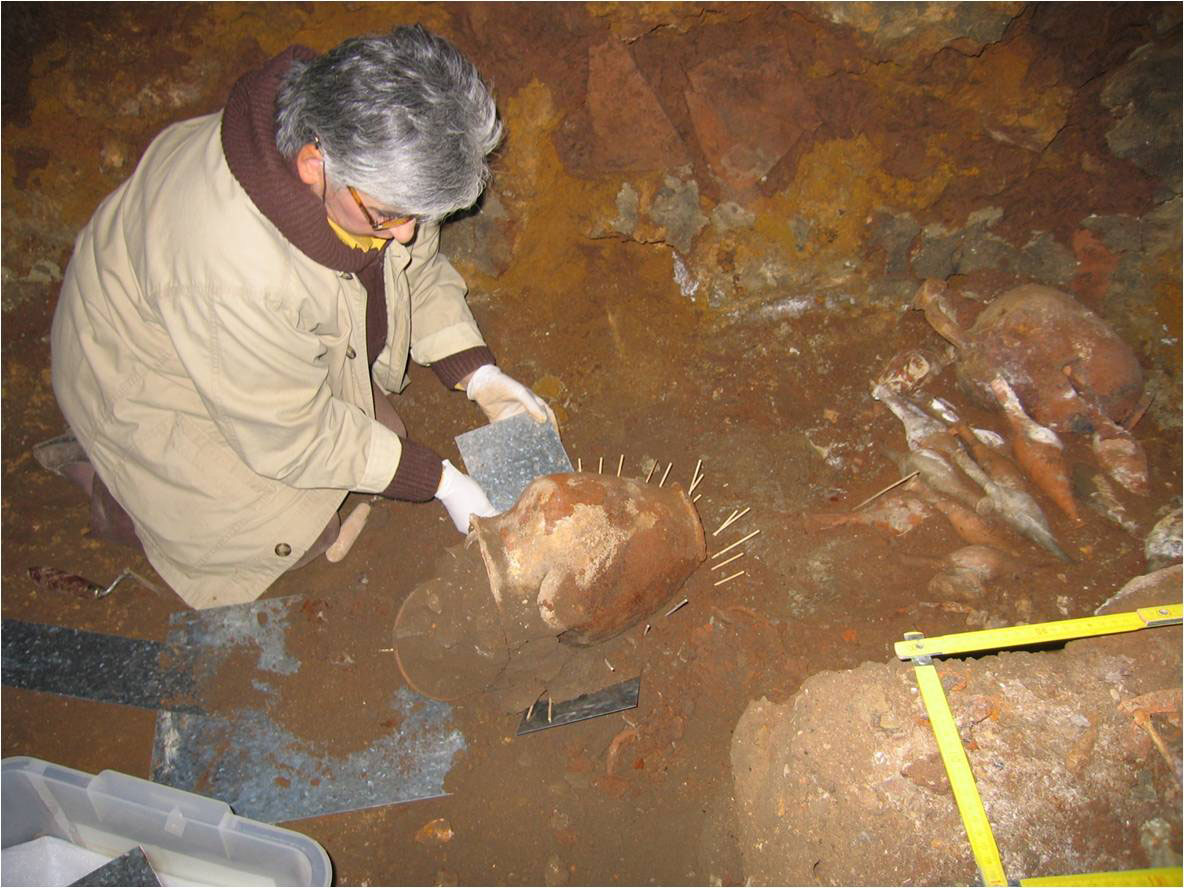 Μ.Λ.-Π.: Κοιτάξτε. Δεν σταμάτησα να επιμορφώνομαι ποτέ, ό,τι συναντούσα στη δουλειά μου που έβλεπα ότι πρέπει να το μάθω καλύτερα παρακολουθούσα σεμινάρια στο εξωτερικό συνήθως. Είναι η φύση της δουλειάς μας τέτοια. Οι μέθοδοι, τα υλικά ανανεώνονται συχνά και πρέπει να είμαστε ενήμεροι, να παρακολουθούμε την εξέλιξη βιβλιογραφικά πρώτα, αλλά και πρακτικά, αν χρειάζεται. Παρακολούθησα λοιπόν ένα σεμινάριο στο Αρχαιολογικό Ινστιτούτο, μετά τις σπουδές μου, για τα πρώτα σωστικά μέτρα στην ανασκαφή, τις νέες τεχνικές που χρησιμοποιούνται. Υπάρχουν πολλές ειδικές τεχνικές που μπορούμε να τις χρησιμοποιήσουμε και να σηκώσουμε με ασφάλεια ένα αρχαίο εύρημα από το χώμα, να το αποσπάσουμε από το χώμα. Εκείνη η στιγμή είναι πολύ κρίσιμη για τη μελλοντική ζωή του, δηλαδή θα πρέπει να μετριάσουμε το σοκ από την απότομη αλλαγή περιβάλλοντος και να περισώσουμε όλα τα στοιχεία που μας δίνει, να μην καταστραφεί τίποτα. Γνωρίζουμε πολλές τεχνικές, αλλά τις εφαρμόζουμε ανάλογα με την περίσταση. Αυτό λοιπόν που είδατε με τον σκελετό μάλλον είναι νάρθηκας, έτσι τον λέμε: νάρθηκα.