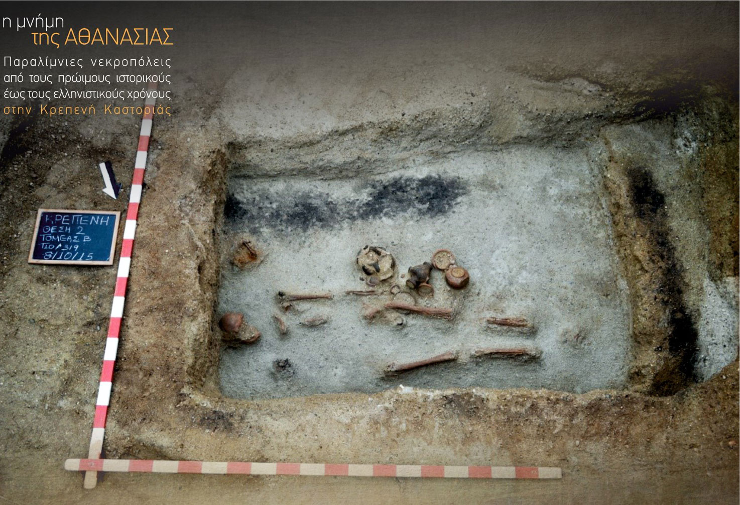 Στο περιορισμένο πλάτος του χάνδακα τοποθέτησης του αποχετευτικού αγωγού και σε δύσκολες αμμώδεις επιχώσεις, η αρχαιολογική σκαπάνη αποκάλυψε ταφές τριών νεκροπόλεων, ισάριθμων και άγνωστων προς το παρόν οικιστικών συνόλων της περιοχής. Στοιχεία της οργάνωσης του χώρου των νεκροπόλεων, η κατάσταση διατήρησης των οστών και τα κτερίσματα των ταφών είναι αποκαλυπτικά διαφορετικών εθίμων ταφής και κοινωνικής οργάνωσης.